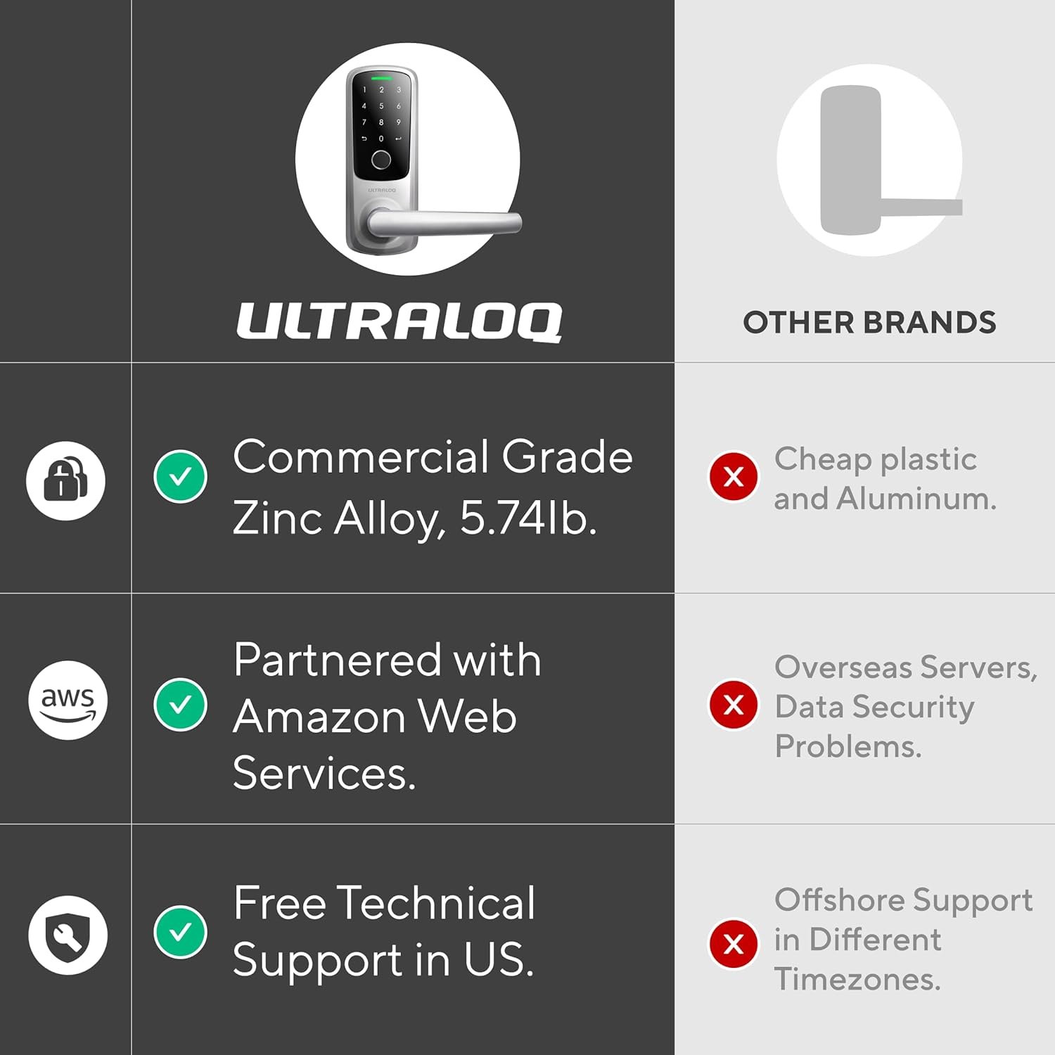 【Superior Build Quality】With a sturdy zinc alloy construction, Ultraloq Smart Lock is tested to handle the access of a busy household. With weatherproof exterior lock, Smart Lock is ready to protect your home rain or shine.