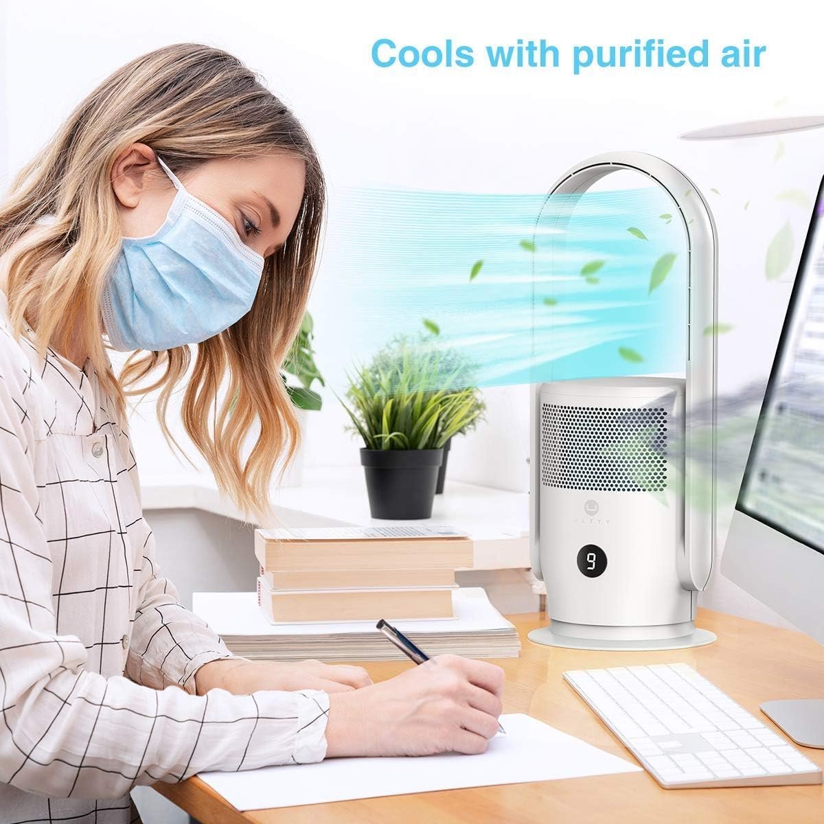 ULTTY Air Purifier Tower Fan with Remote Control Purifier air with its smooth oscillation for consistent, cool air flow. Equipped with 3-mode & 9-speed settings, Control by LED touch-screen or remote control, this space saver is smartly designed for any home or office.