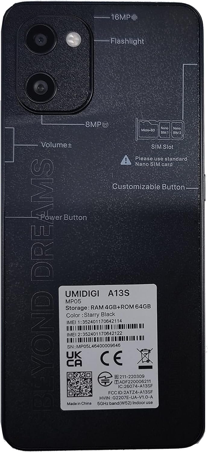 【Dual 4G VoLTE& Global Network】UMIDIGI A13S unlocked smartphones support dual SIM. Both SIM slots are compatible with 4G, and support 4G VoLTE in both slots simultaneously. It is compatible with most of the GSM and CDMA network. Please kindly note that, the phone is not compatible with the new network of ATT& Cricket & Verizon since 1 Jan 2022). If there is any connection problem, you can contact us anytime.