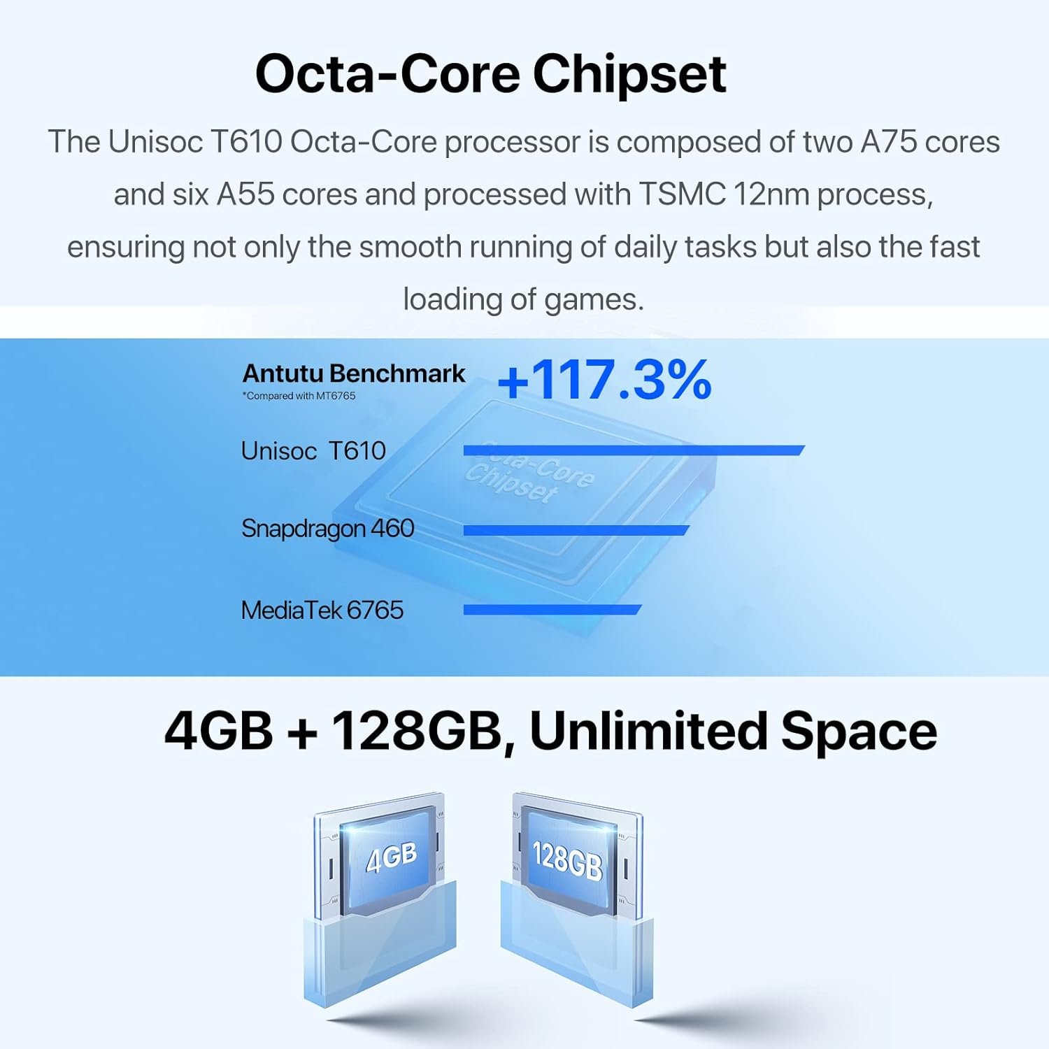 ★【CPU & Built-in Memory & Android 11】UMIDIGI F3 SE cell phone is equipped with the latest Android 11 system, Unisoc T610 octa-core processor (Cortex-A75*2, Cortex-A55*6) CPU and built-in memory RAM 4GB ROM. It comes with 128GB and also supports dual Nano-SIM or Nano-SIM+ dedicated Micro-SD expansion memory cards. It greatly improves performance and provides octa-core operating frequency up to 2GHz, reducing lag in apps, web browsing and games.