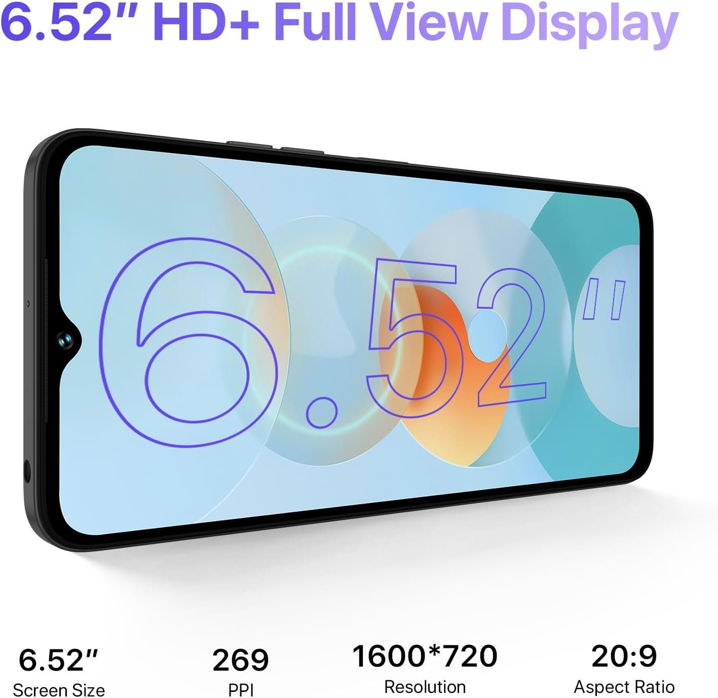 【6.52-inch screen & Ultra-thin body】 G5A unlock smartphone is 8.8mm thick and weighs only 195 grams. It is compact and portable with USB Type-C connectivity, a large 6.52-inch screen, and 1600*720 HD+ resolution. With FHD+ display with 60Hz refresh rate, the screen looks wider and can be used comfortably.