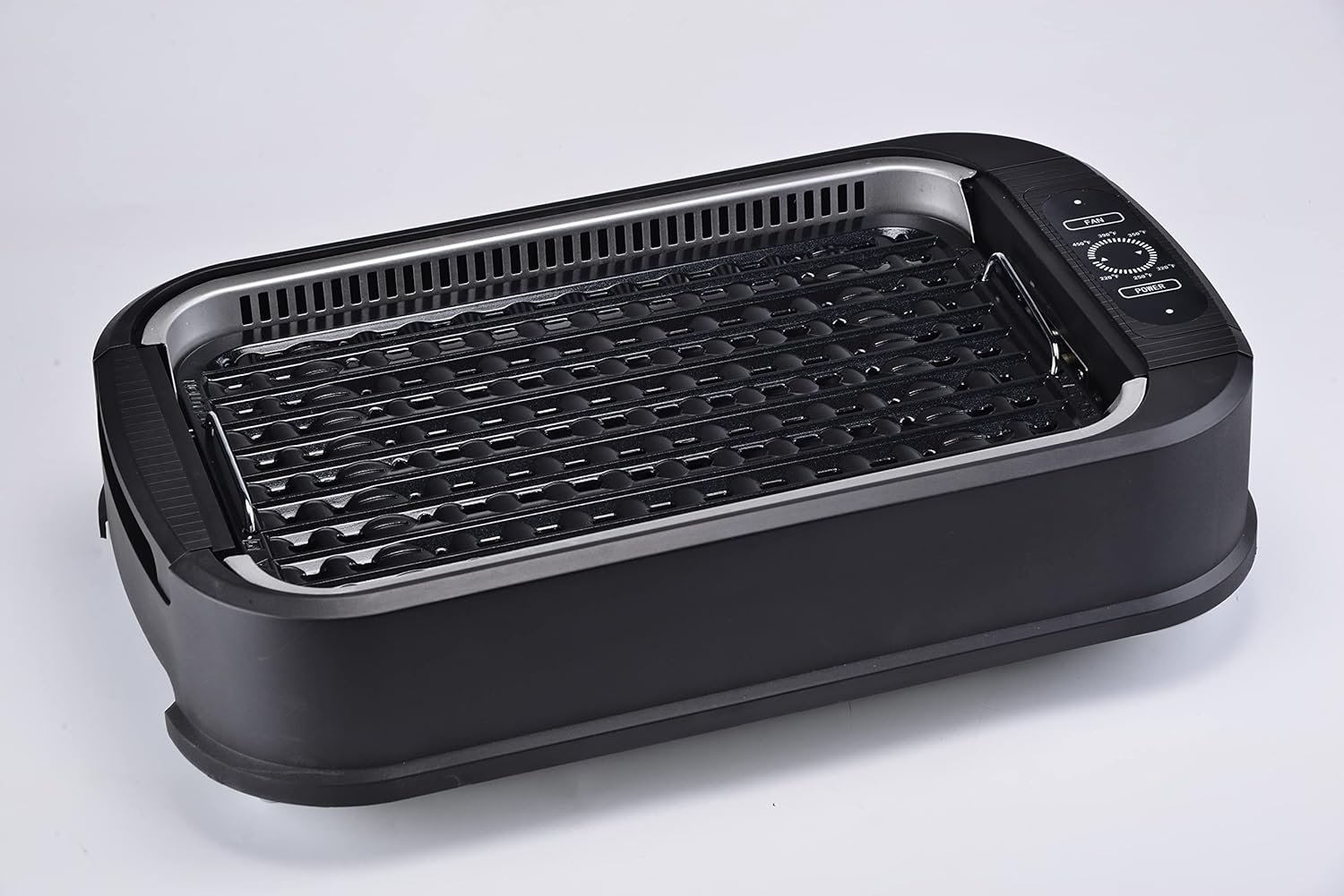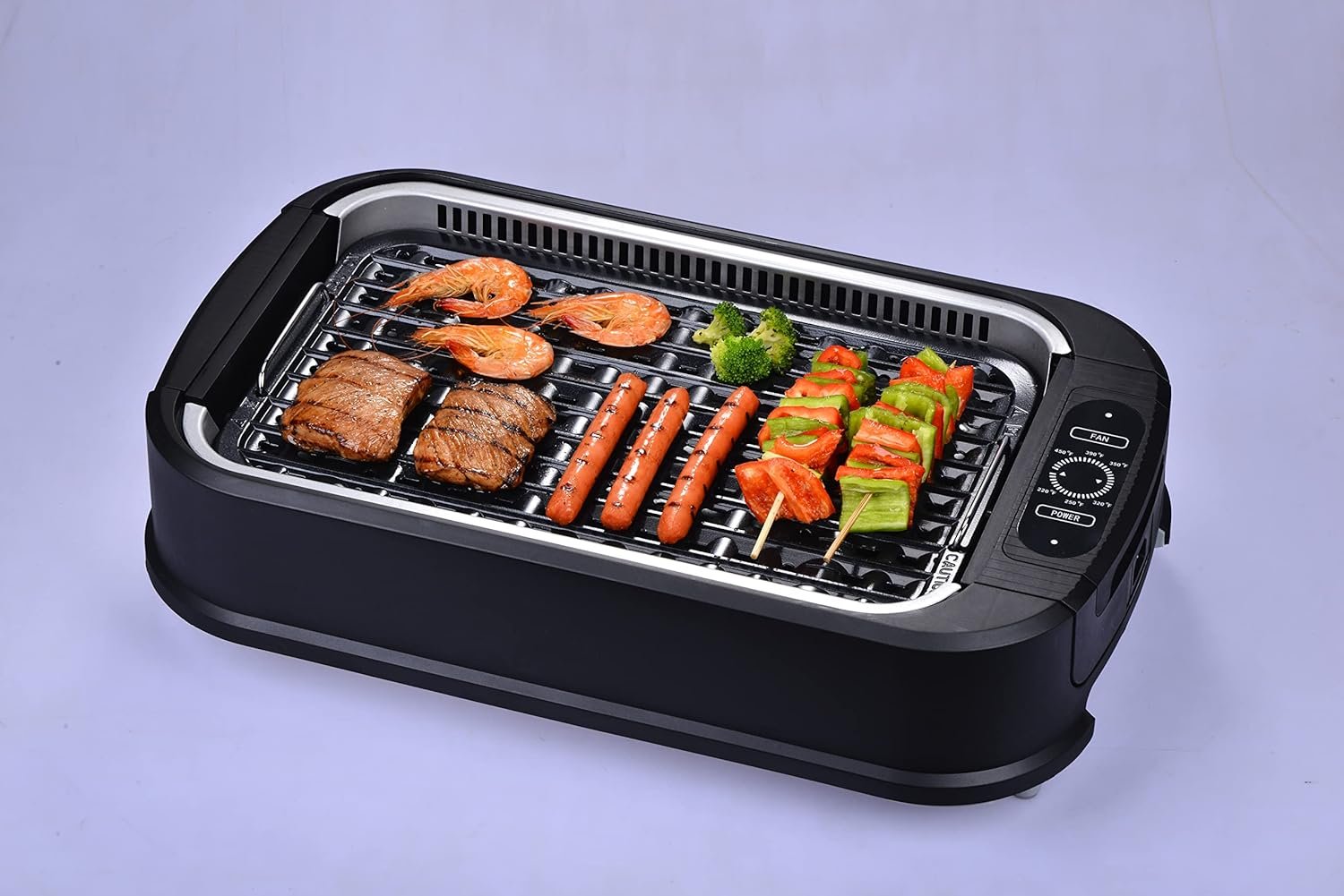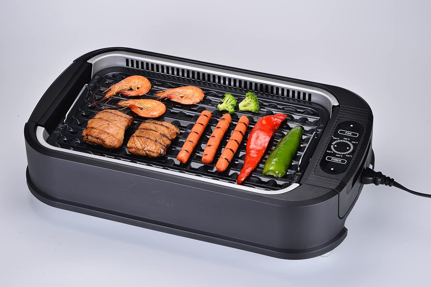 This electric grill allows you to grill inside the house while preventing any odor formation within the premises,can be used to cook in pretty much any type of weather. It is versatile and can cook almost any food that may come along,you can easily use it indoors without worry of smoke, and when it starts getting nice out, take it outside for the full experience! CONTENT: 1 PC UNIT + 1 PC GRILL PLATE + 1 PC FLAT PLATE + 1 PC CLASS LID + 1 PC POWER CORD + 1 PC HEATING ELEMENT + 1 PC DRIP TRAY + 1 PC WATER TRAY