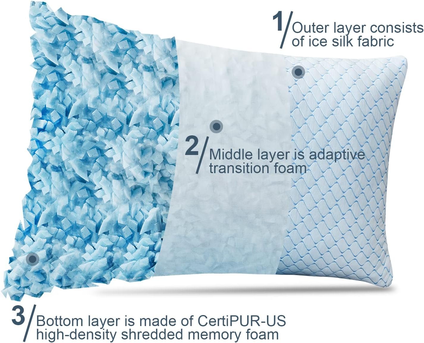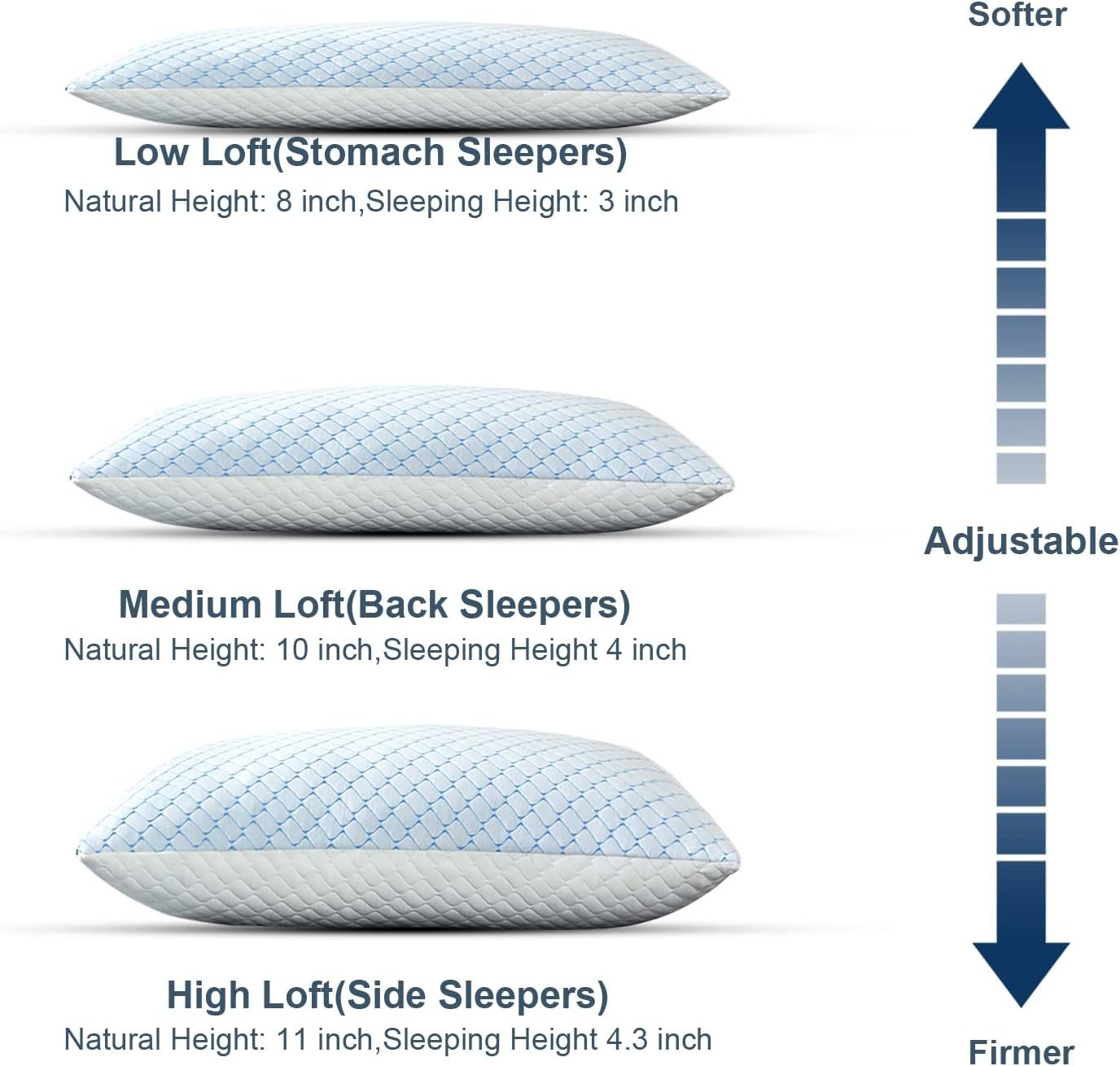 Adjustable Firmness: The shredded memory foam pillows features a zippered inner and outer cover, you just need to add or remove filling to suit your size.