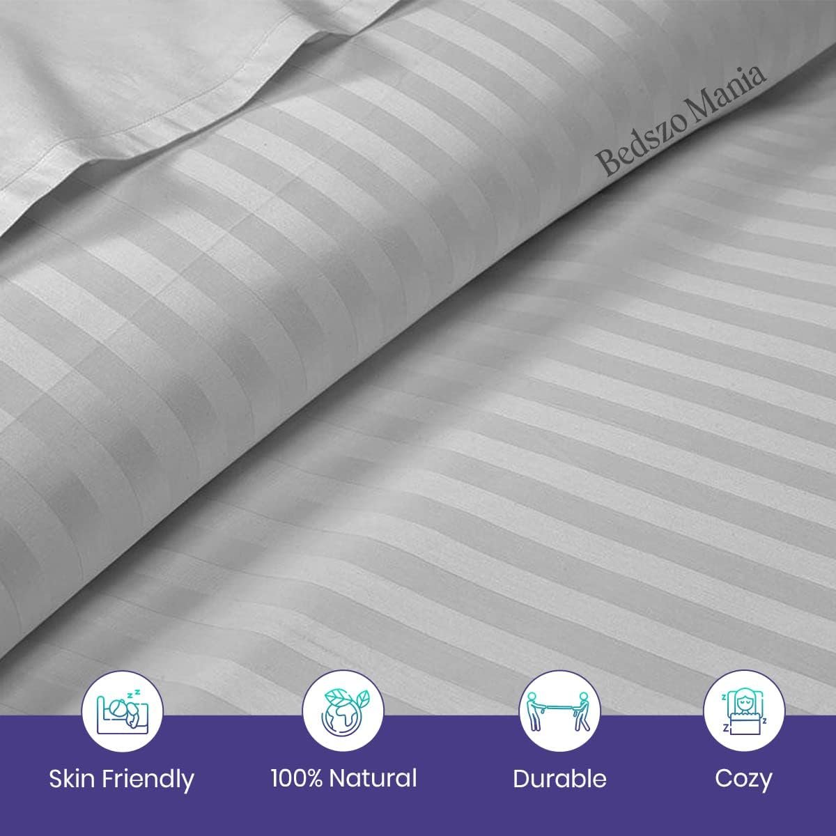 Universal V Berth 4 Piece Bed Sheet Set Best Boat V Berth Bedding 1000 TC Silky Soft & Smooth Egyptian Cotton Silver Stripe Solid Fits Upto 8” Inch Deep Pocket