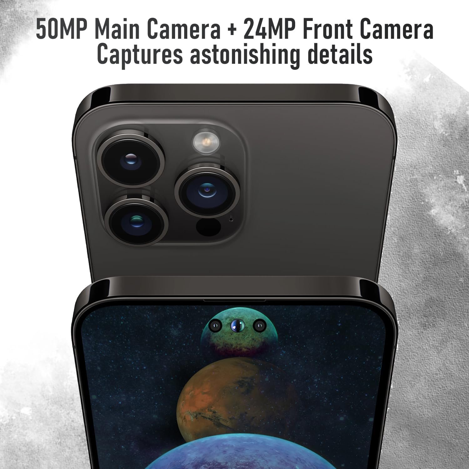 The I14 ProMax unlocked cell phone boasts a comprehensive camera upgrade, featuring a 50MP main camera, a 2MP macro lens, and advanced image processing technology that showcases vibrant colors and stunning details. The 24MP front-facing camera comes with built-in portrait enhancement for excellent selfies.