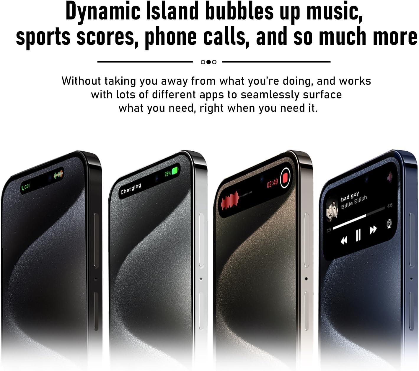 Dynamic Island – bubbles up alerts and Live Activities. your Lock Screen stays glanceable, so you don’t have to tap it to stay in the know.