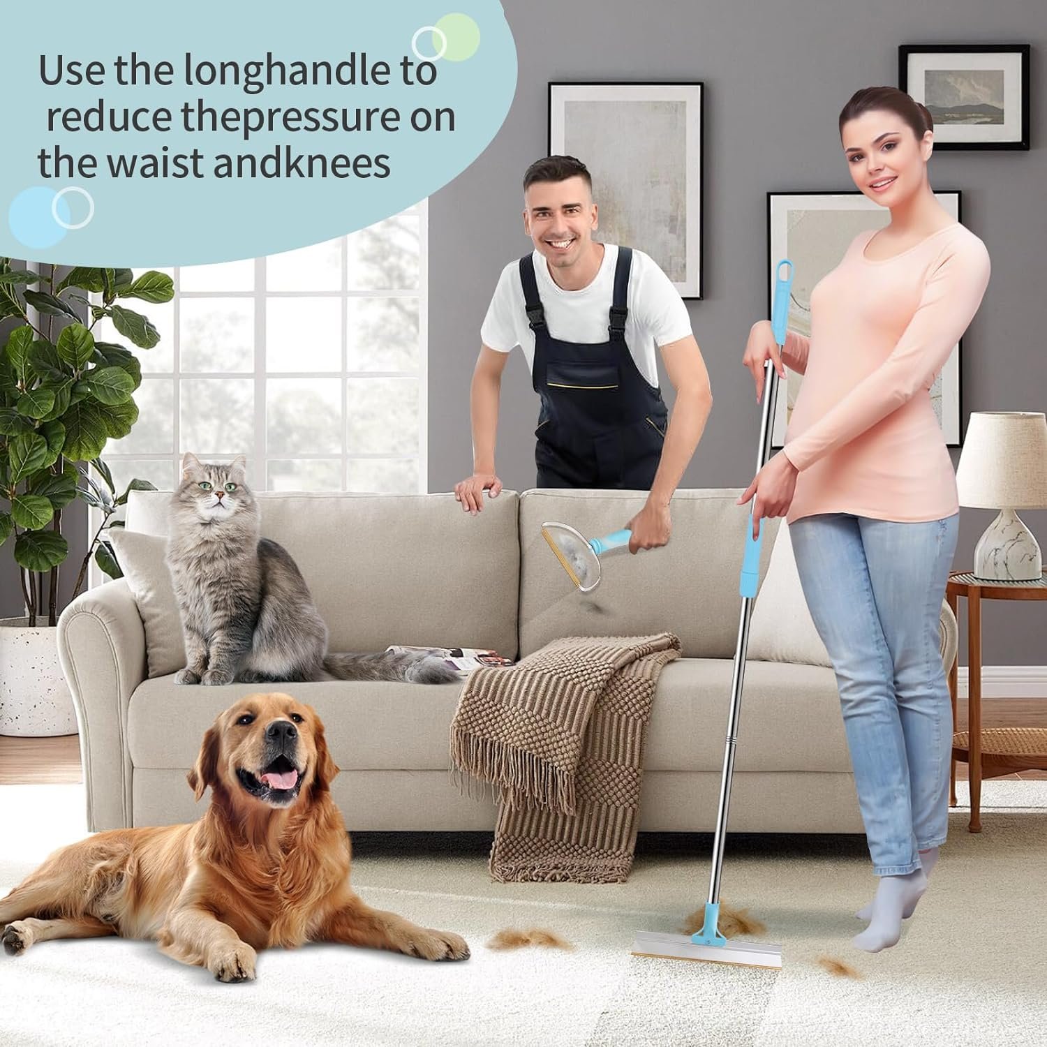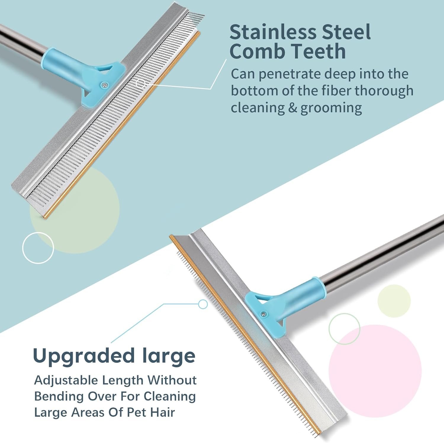 PET OWNER MUST HAVE: saves more time and energy, Pet Hair Remover Set is a right-hand man for pet owners and pet hair rake making every pet owner’s life easier. Multipurpose Pet Hair Broom not only can be used on all carpets, but also for stairs, pet mats, car mats, beds, couches, and more.