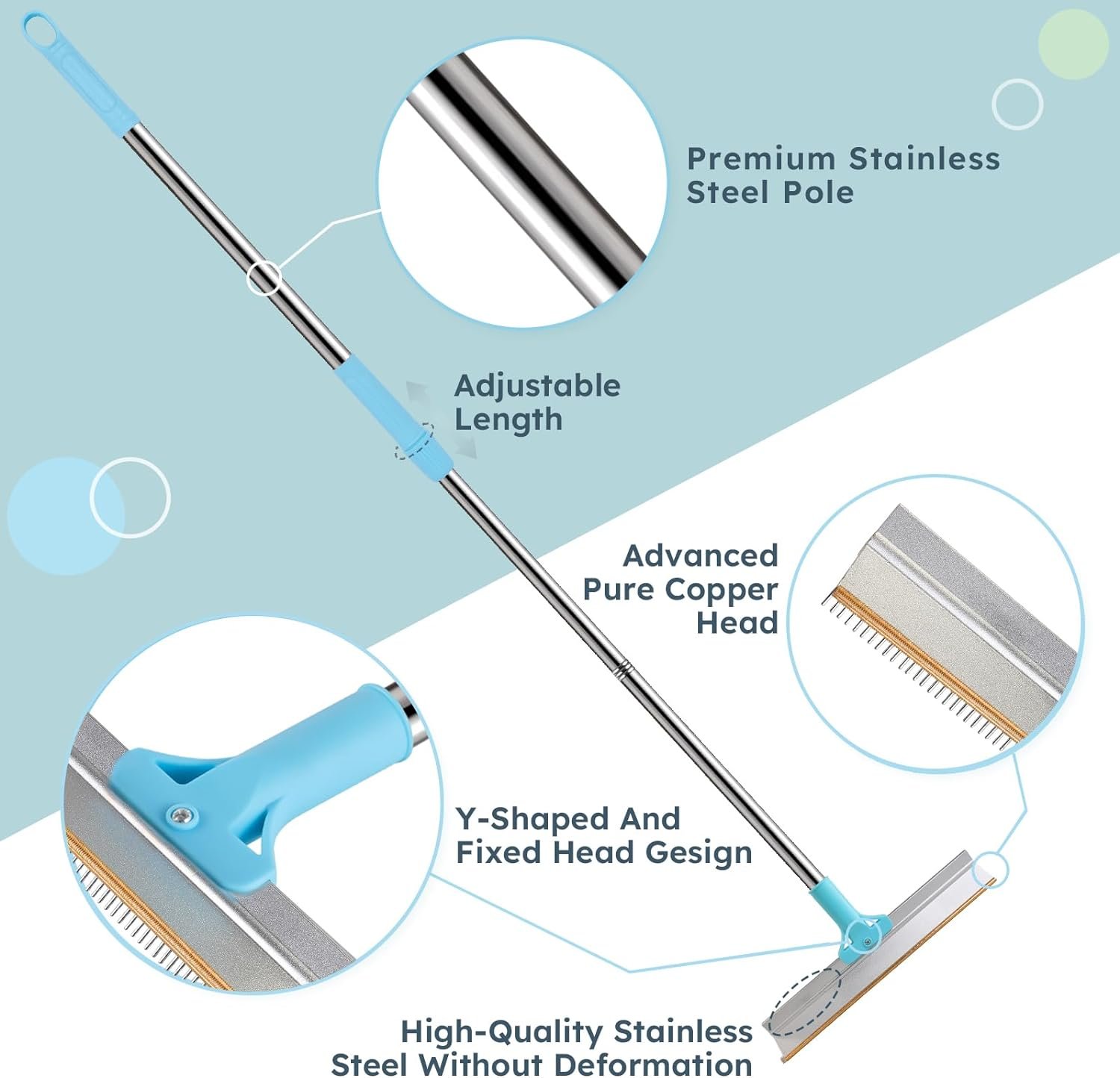 ADJUSTABLE HANDLE LENGTH: Three stainless steel rods can contract to 42.1 inches or extend to 55.1 inches, It allows you to adapt different lengths of the tool to meet your needs and easy reach to narrow space.