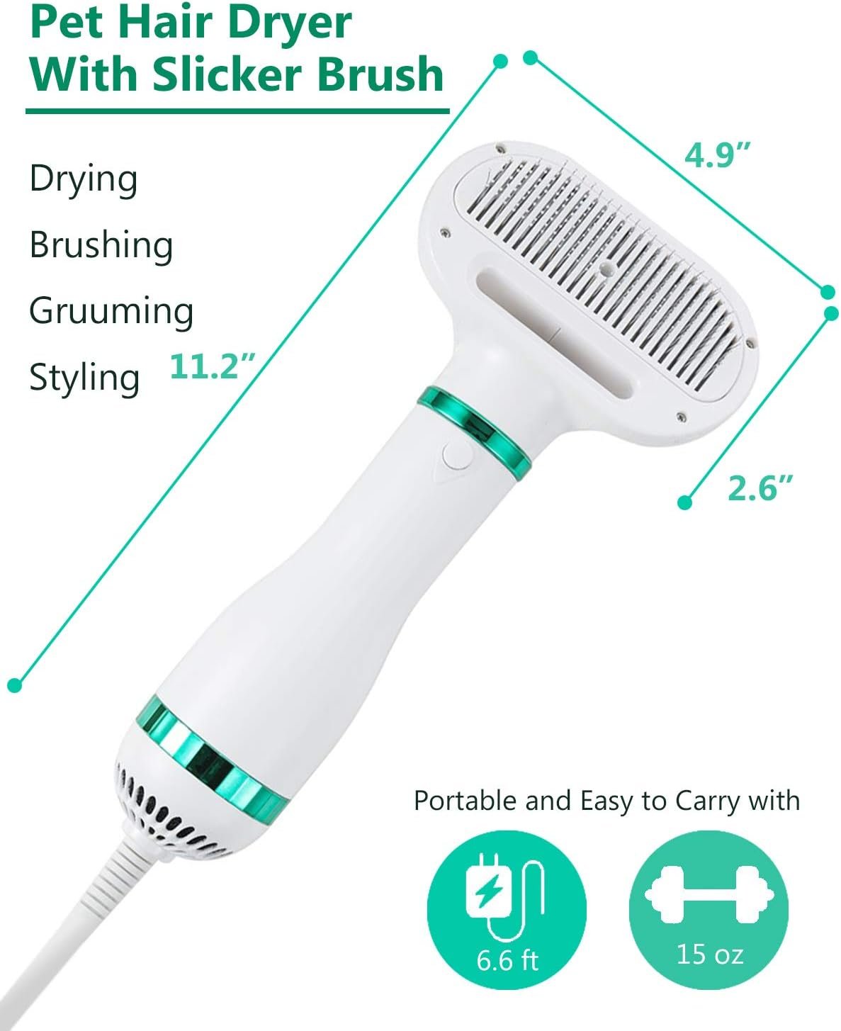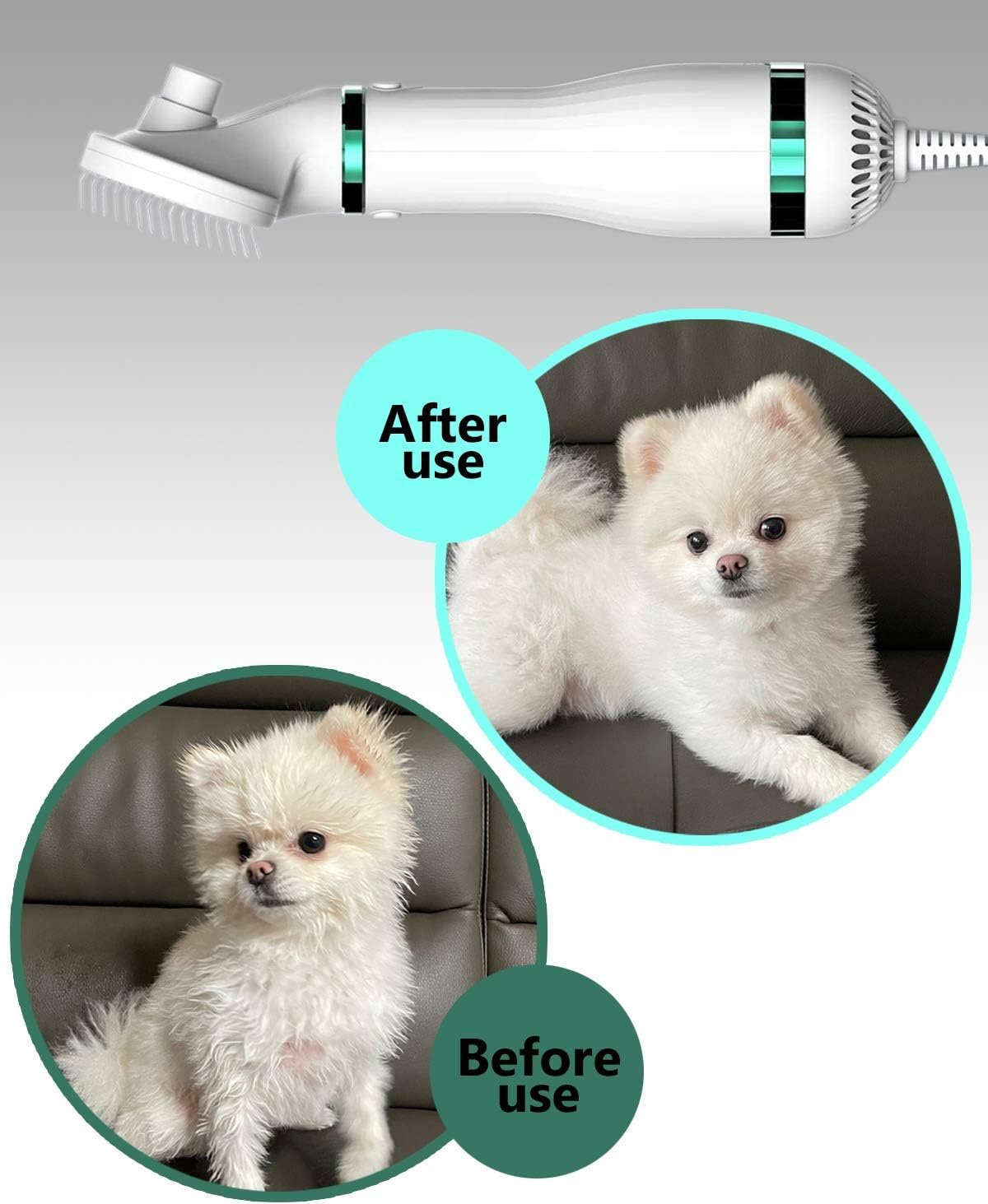 [The UPGRADED 2 IN 1 PET GROOMING DRYER]: 2 in 1 pet grooming brush is perfect choice for your pet for drying and grooming. you can also brush the fluffy fur of the pet to make the hair softer and free from knots, making it more convenient and time-saving.
