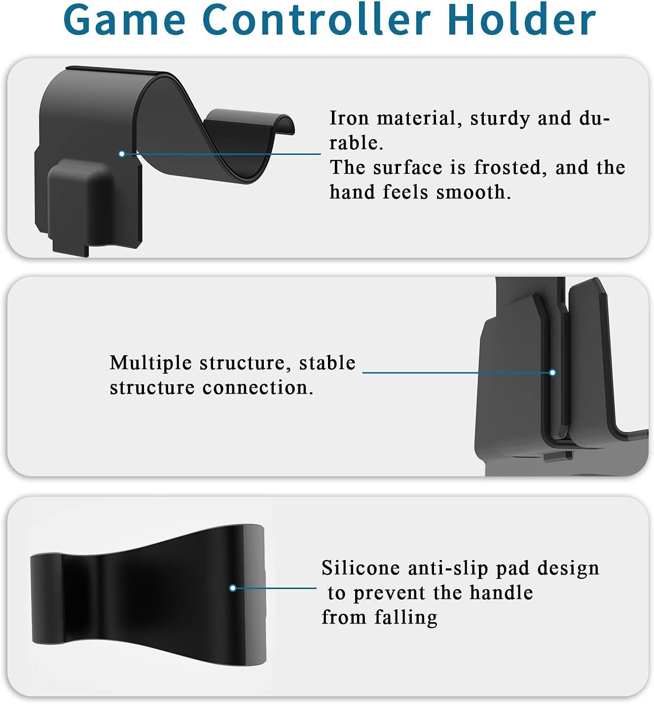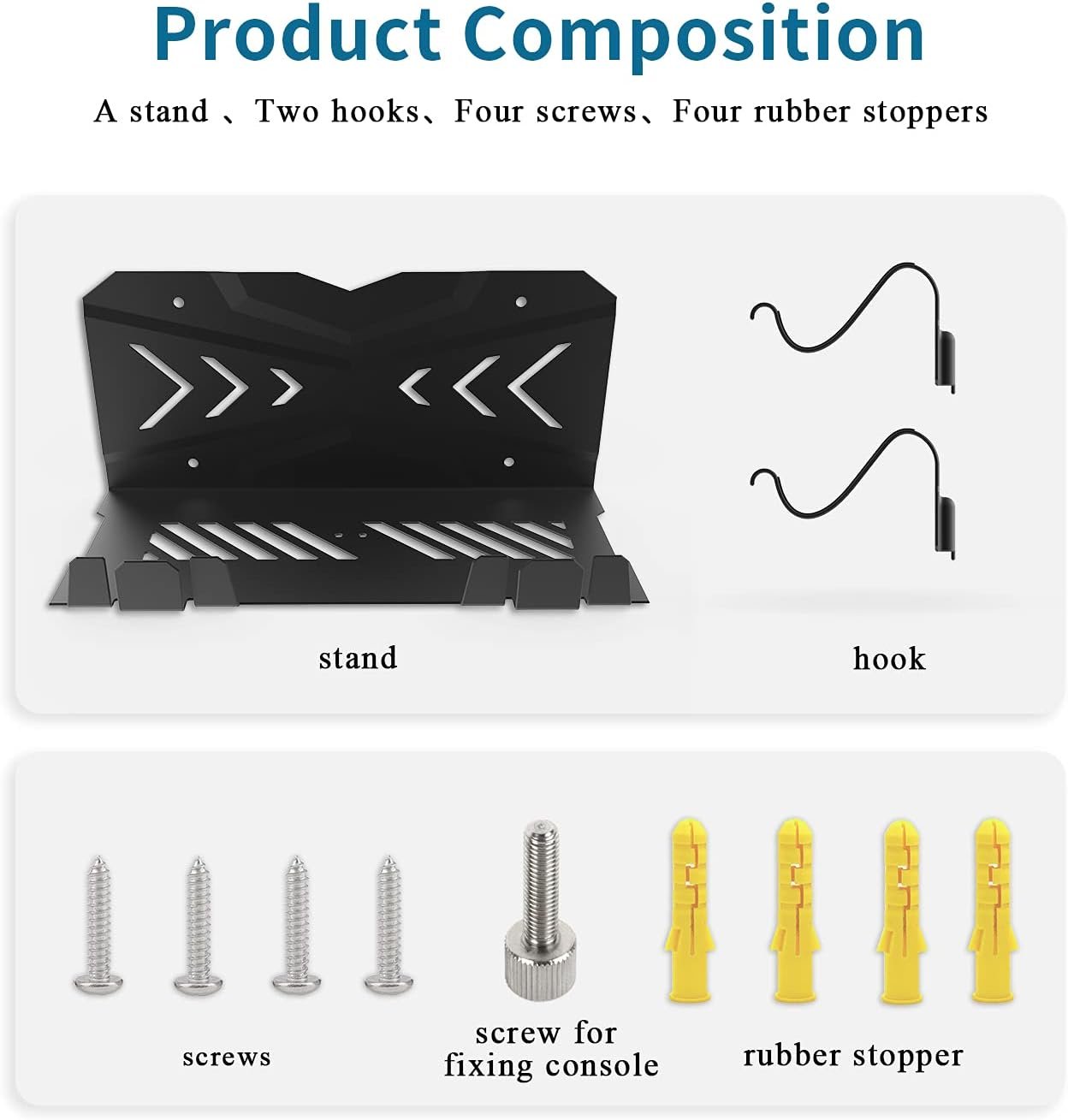 🎮【Hook Disassemble Design】The ps5 wall mount kit contained 2 hooks can be disassemble easily and with silicone pad inside the hook, prevent the PS5 controllers from slip randomly, to avoid your controller dropping from the high place by accident.Black matte paint surface wall shelf bring enhance your home decor feel.
