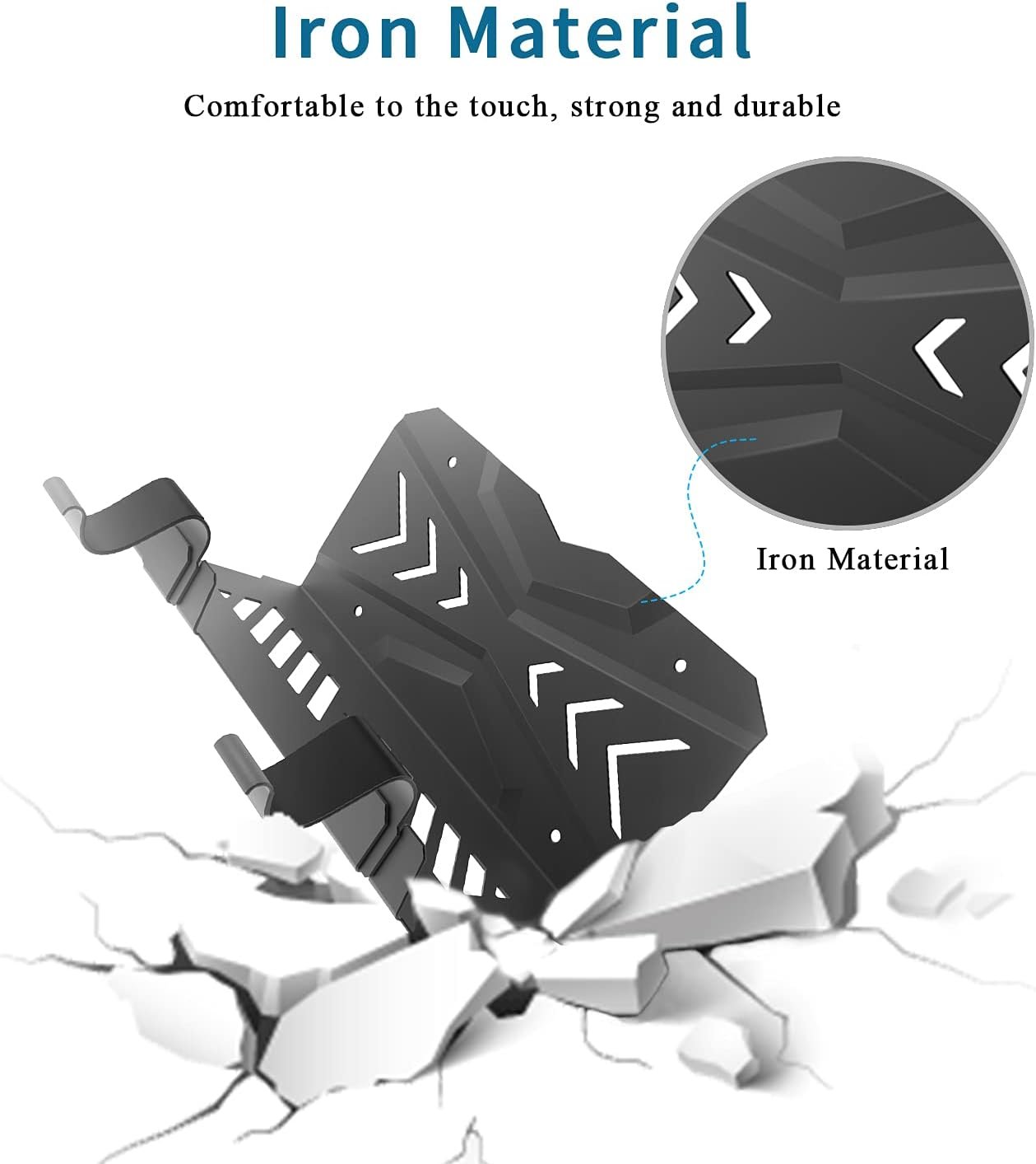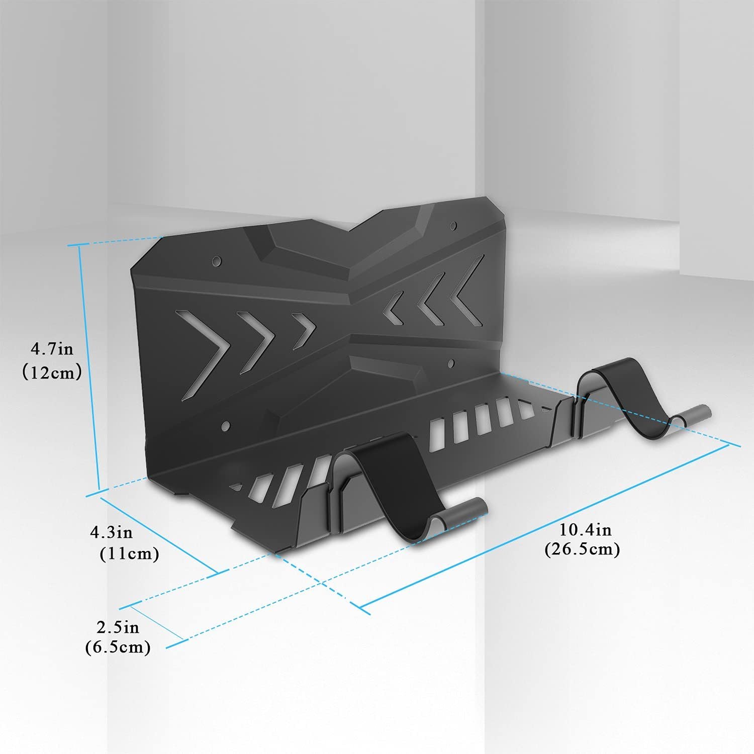 🎮【Specially Design Wall Mount For PS5】UPOK wall mount kit design for universal PS5/ PS5 slim console, 2 hanger rack fit game controllers, ps5 VR2 headset or headphone. Stylish and cool arrow design inner groove helps console dissipation more quickly, 2 independent holder convenient storage your game devices. Hard metal material makes the holder more stable and an ideal vertical display shelf stand for wall.