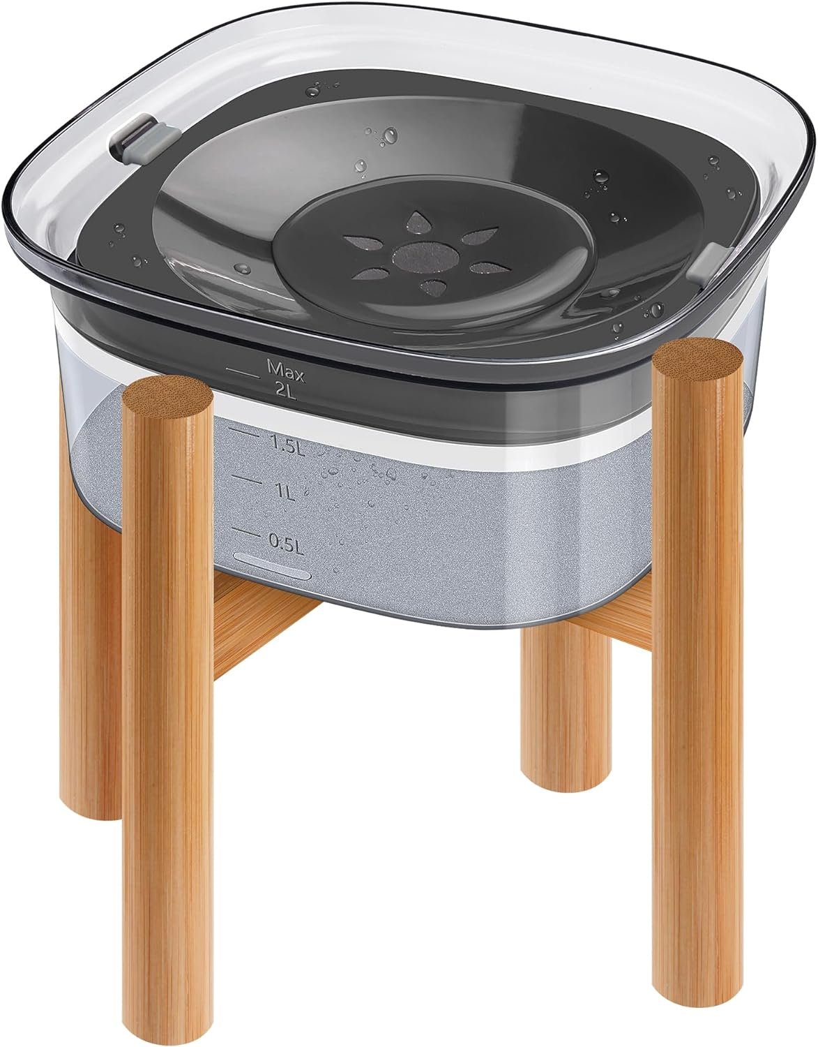 Anti-Spill & Anti-Slip: Widened bowl mouth, floating disk, and silicone plugs combine to effectively prevent water from spilling out and keep the floor clean. The included bamboo shelf is easy to assemble, effectively saving you time. Additionally, it can also be widely applied in daily life.