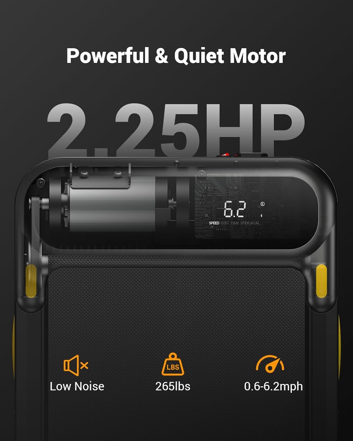 Powerful And Silent Motor: The under desk treadmill is equipped with a powerful 2.25HP motor with a maximum load of 265 pounds. The powerful motor of this folding treadmill not only has a stable and high weight capacity, but also very quiet. You can exercise anywhere without worrying about yourself and others being disturbed.