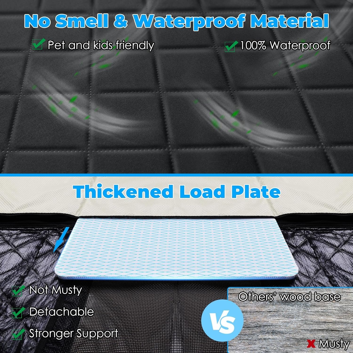 No Smell Material: The dog car seat cover for back seat without terrible smell is friendly for pets and children. In an enclosed car space, no terrible smell is also important to keep you focused and driving safely, something that others’ dog covers on the market ignore. The thickened PP hollow board plate is more durable than others’ wood base.