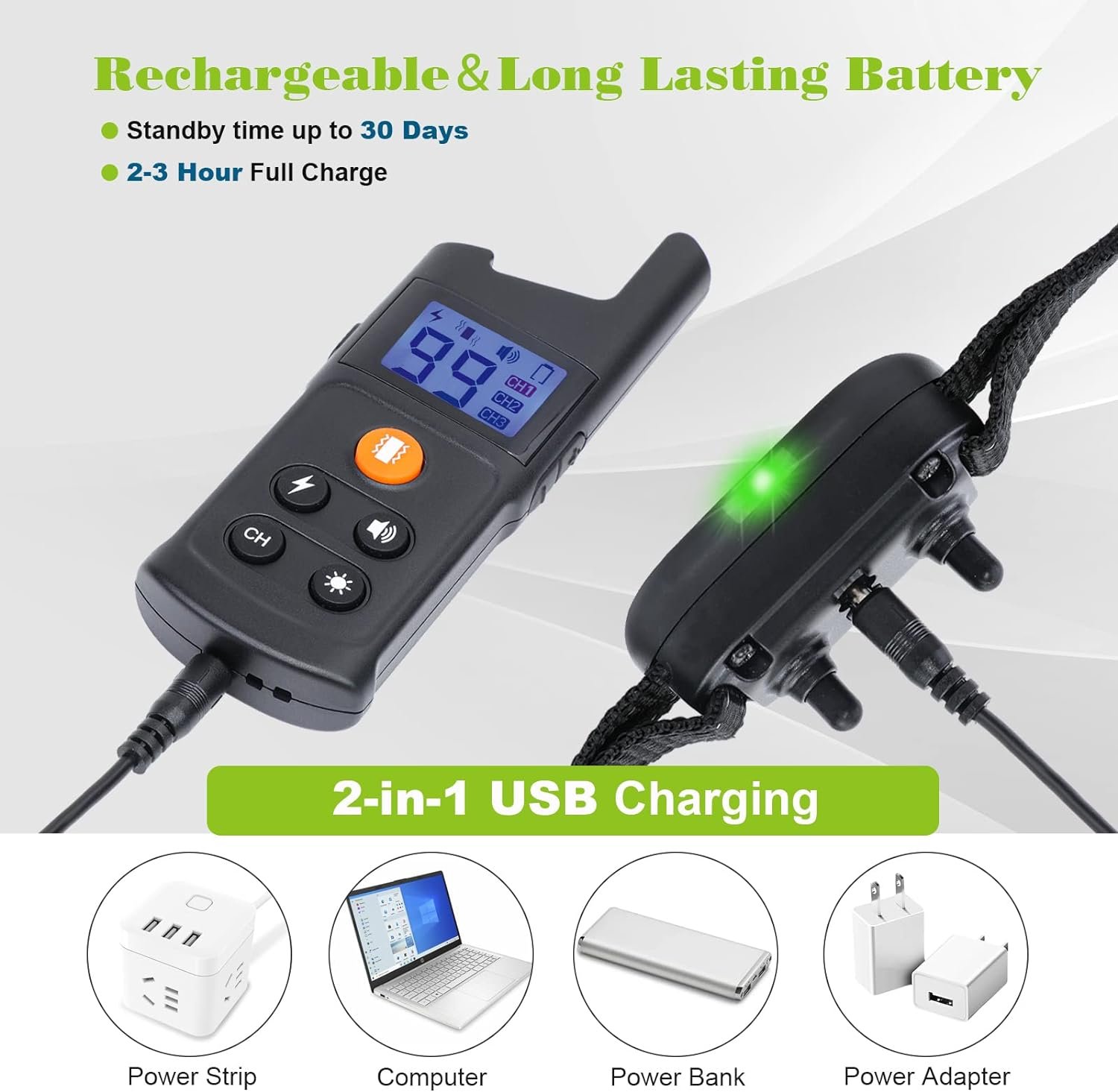 【Night LED Light+IP68 Waterproof】LED Lights help you and your dog quickly mutually locate in the dark, and stay safe at night. IP 68 waterproof dog training e-collar is convenient for your dog to bathe, play around the pool or in rainy days freely.( The Remote Not Waterproof. Please ensure the receiver charging port be tightly sealed before immersed in water.)