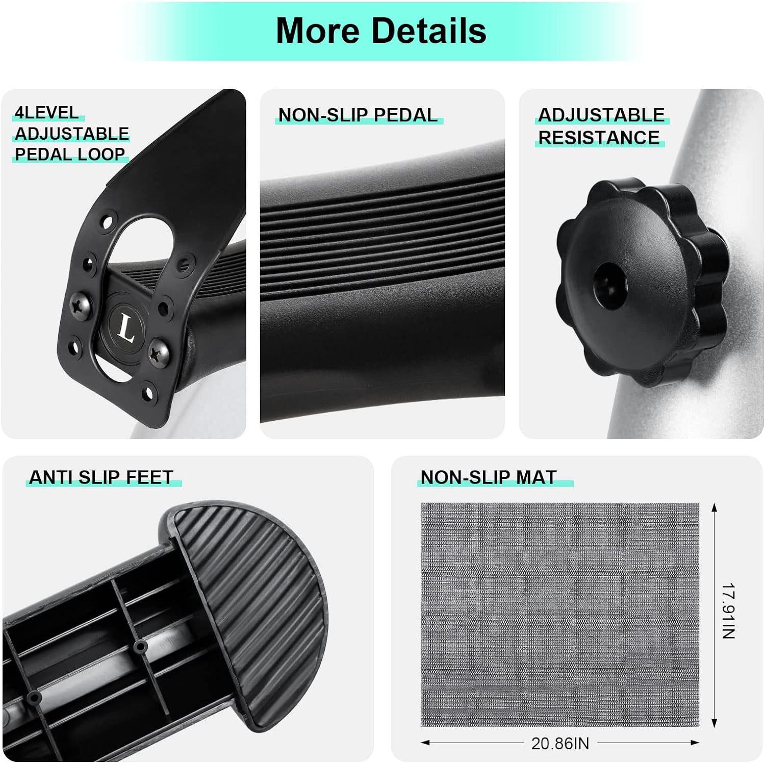 【Under desk bike pedal exerciser 】: The Home mini exercise bike can be used to stimulate blood circulation, improve muscle strength and coordination. It is specially designed to exercise arms and legs. The 4 anti-slip rubber pads prevent sliding and protect the surface during training.