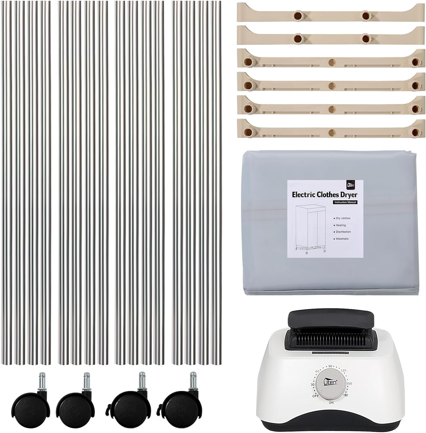 【Easy To Assemble & Multifunction】The 59-inch/1.5M clothes dryer rack unfolds easily and can be set up in less than 5 minutes with installation instructions for quick and easy use. One is multi-purpose, not only as a clothes dryer, but also as a wardrobe and a heater.