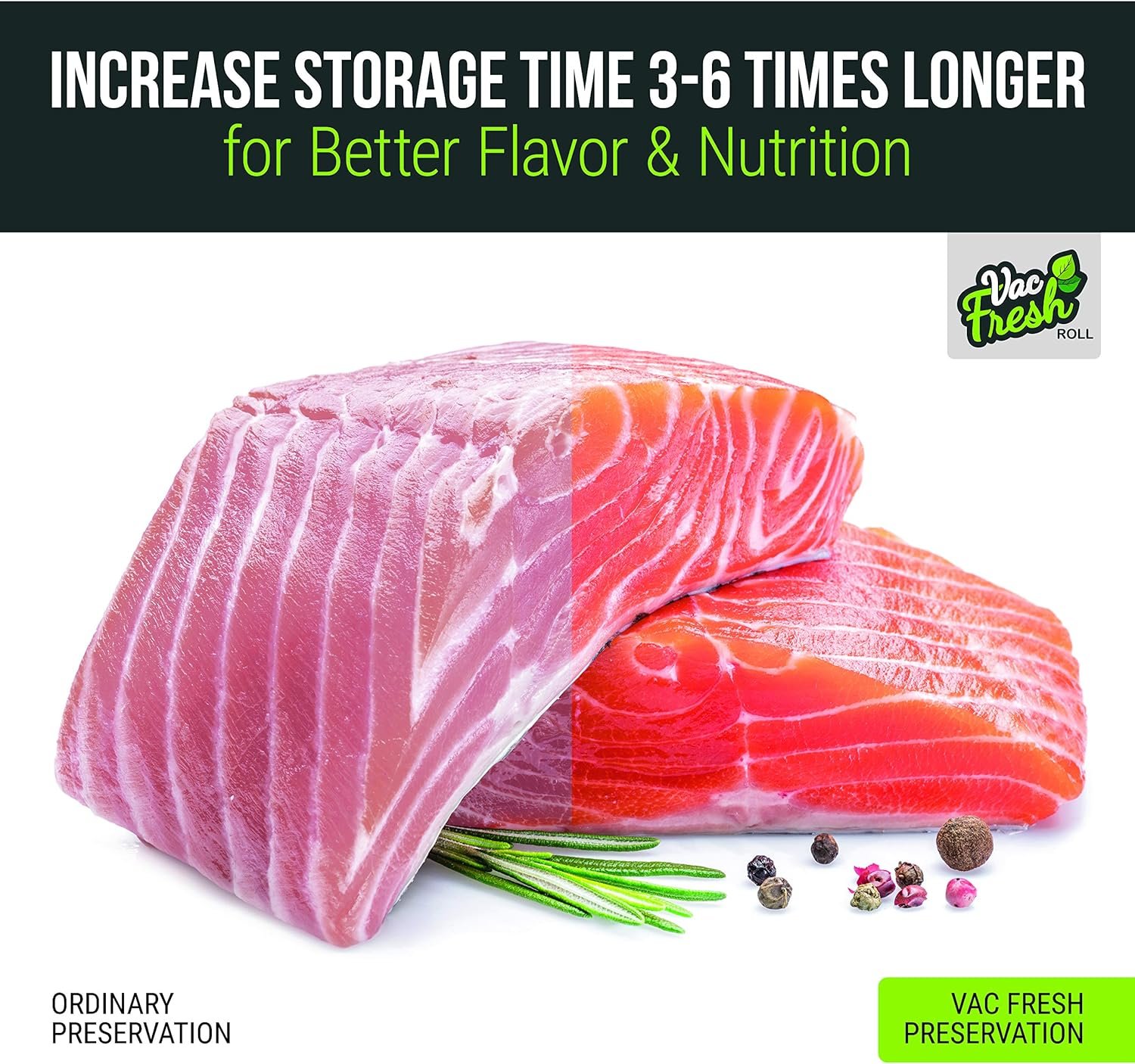 USE WITH ANY VACUUM SEALER – This pack comes with 4 rolls, each with 50 feet worth of bags. The width of the bag is 8 inches which is perfect for larger food items or entire meals. Vac-Fresh bags are made with a 7-layer construction to keep more air out when sealed. These universal vacuum bags can be used in most leading brand vacuum sealers including FoodSaver, Weston, NutriChef, Vesta Precision, and more.