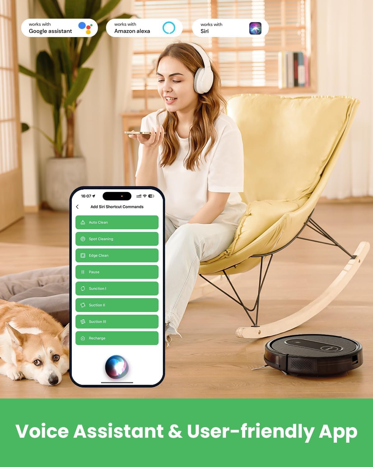 【Voice Control & Smart App】T7 robot vacuum is compatible with Alexa, Siri, IFTTT or Google Assistant, allowing users to make the robot start and stop the clean by voice commands. Effortlessly schedule cleaning tasks while you are away, select start time and cleaning mode on Vactidy App. (Note: the robot only support 2.4GHz WiFi.)