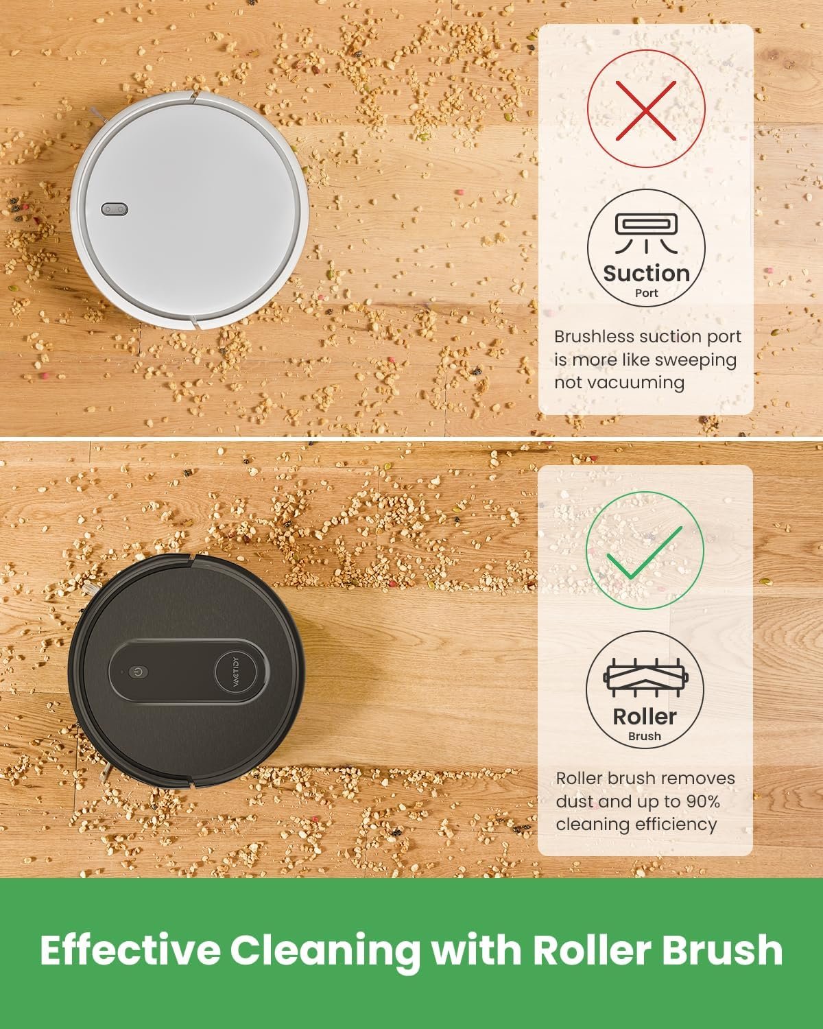【3-Point Thoroughly Cleaning】Equipped with a roller brush and side brushes,T7 vacuum cleaner robot provides powerful suction to effectively capture more dirt on all floors, effortlessly enhances cleaning performance by 20%. Compared with brushless suction port, the roller brush has a stronger grip ability on carpets, picking up deep hiding debris more effectively.