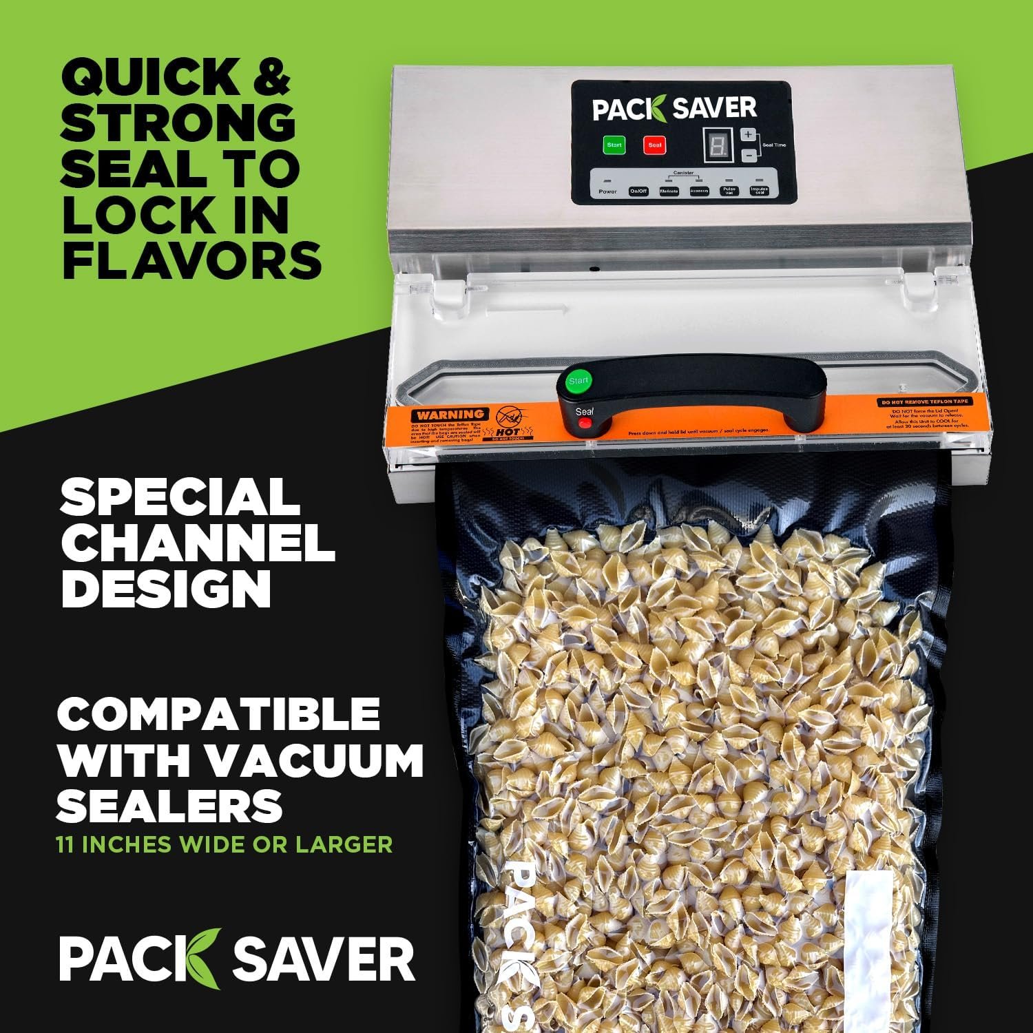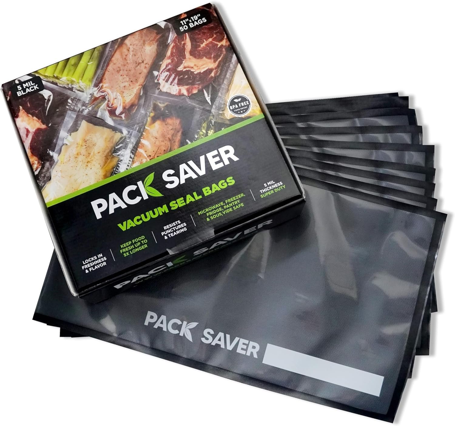 Super Duty and Commercial Grade: These durable vacuum sealer bags are suitable for various uses, including microwaving, freezing, refrigerating, storing in the pantry, and sous vide cooking. They are made with a special channel design to ensure efficient air removal boasting a quick and strong seal and a 5 mil thickness with multiple layers for protection against punctures and tears. This helps keep food fresh and flavorful for up to 5X longer.
