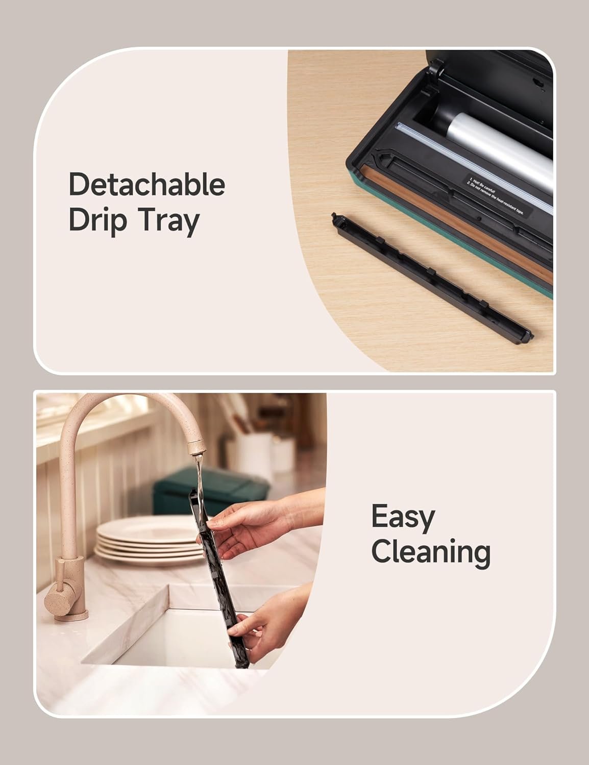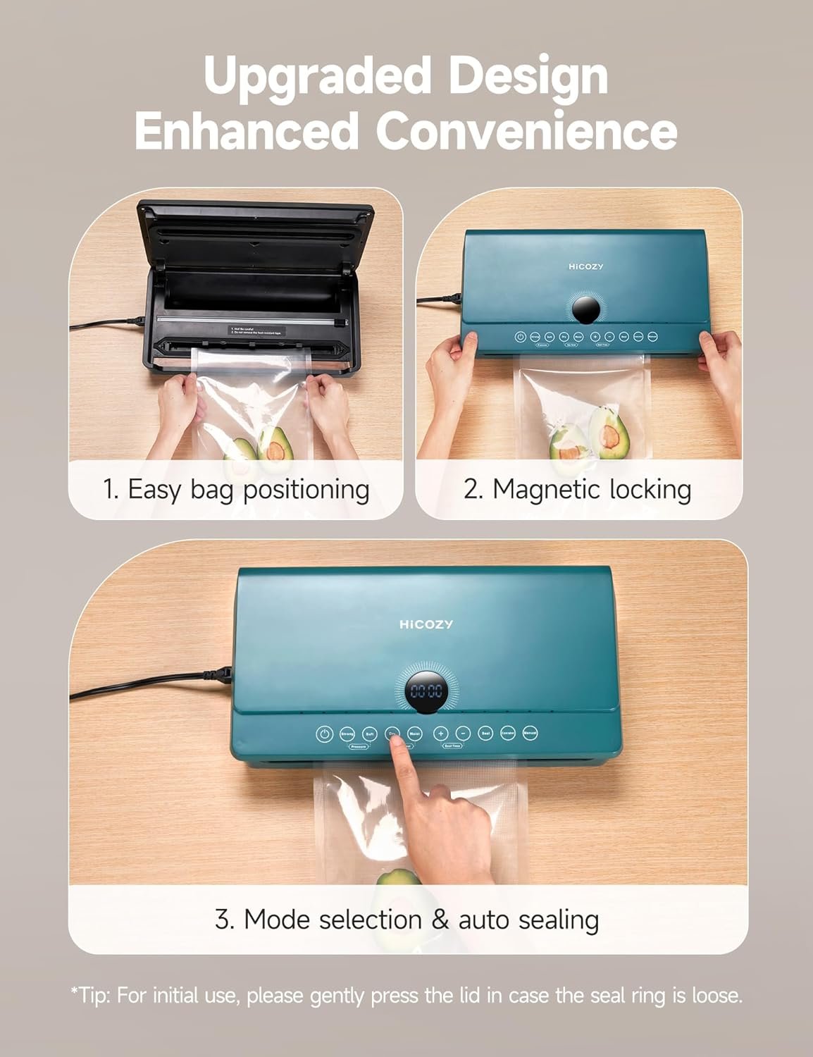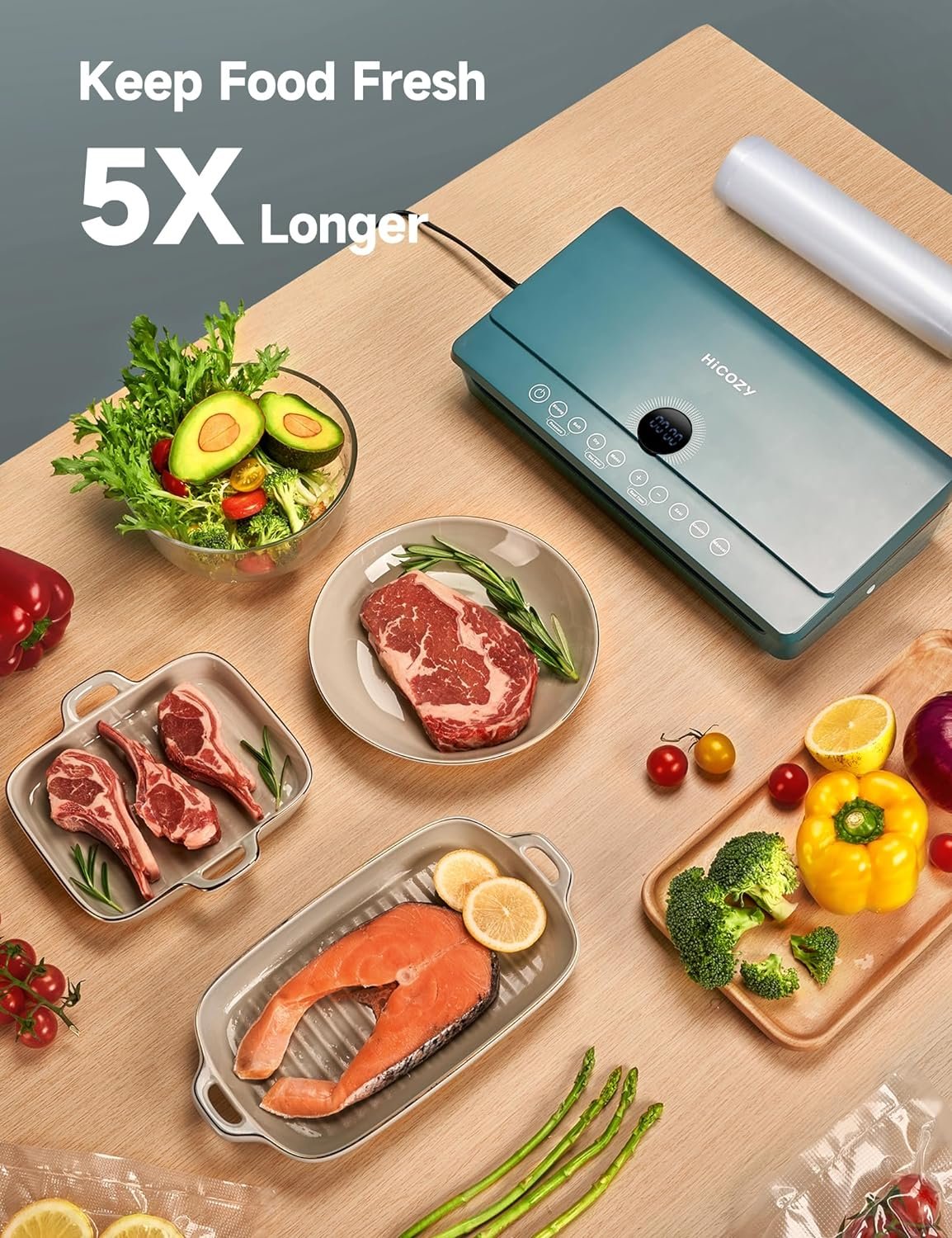 Simple To Clean: The HiCOZY food saver is very easy to clean and maintain. The detachable drip tray allows for hassle-free cleaning. Its sleek design makes this food saver vacuum sealer machine a great gift that compliments any kitchen.