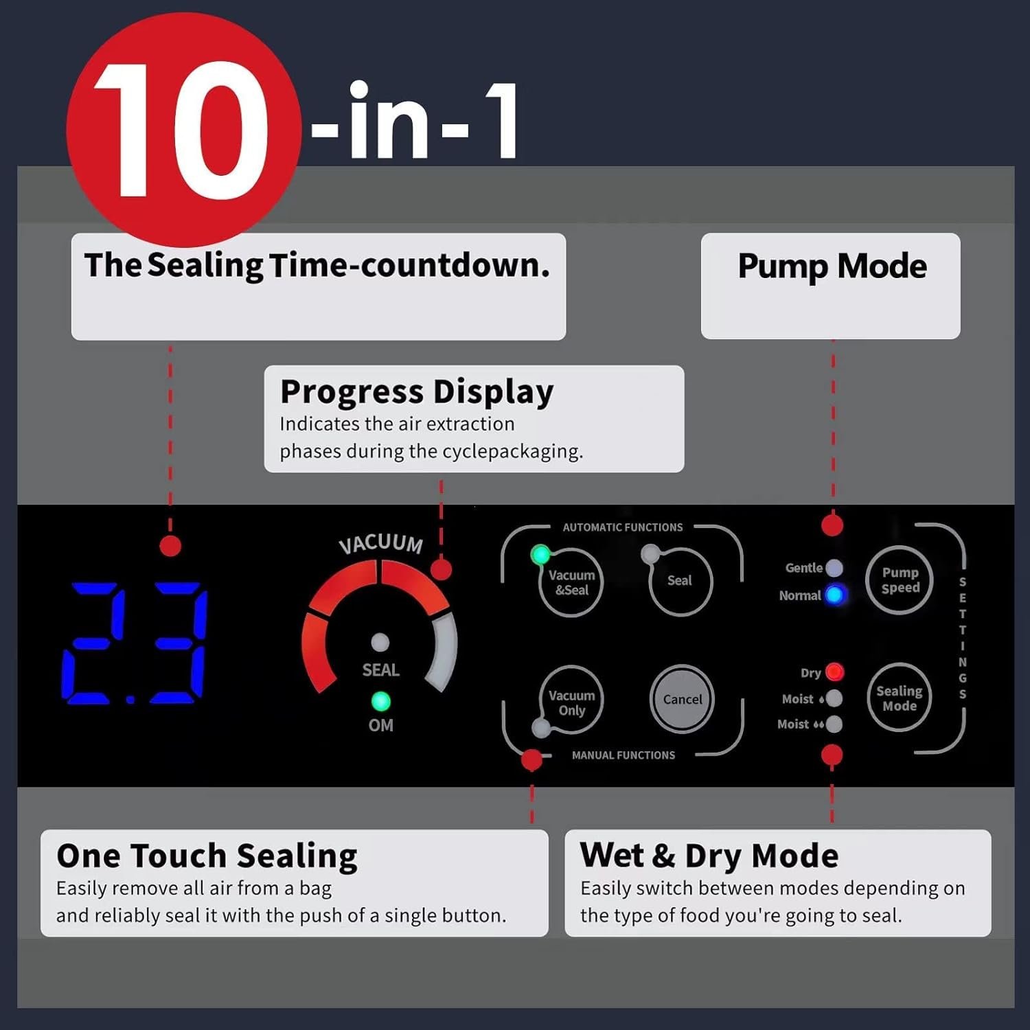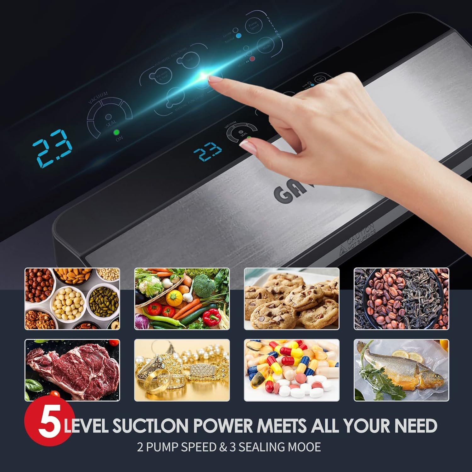 100% SEALING DETECTING: The GAVASTO vacuum sealer uses a proprietary post-sealing detection technology. It will automatically detect the sealing process, and ensure that the heat sealing process continues until your bag is completely sealed. In addition, according to the different sealing temperatures of different vacuum bags on the market, we have designed 3 temperature sealing modes (Dry, Moist’, Moist”), which can easily deal with the sealing problems of various bags.