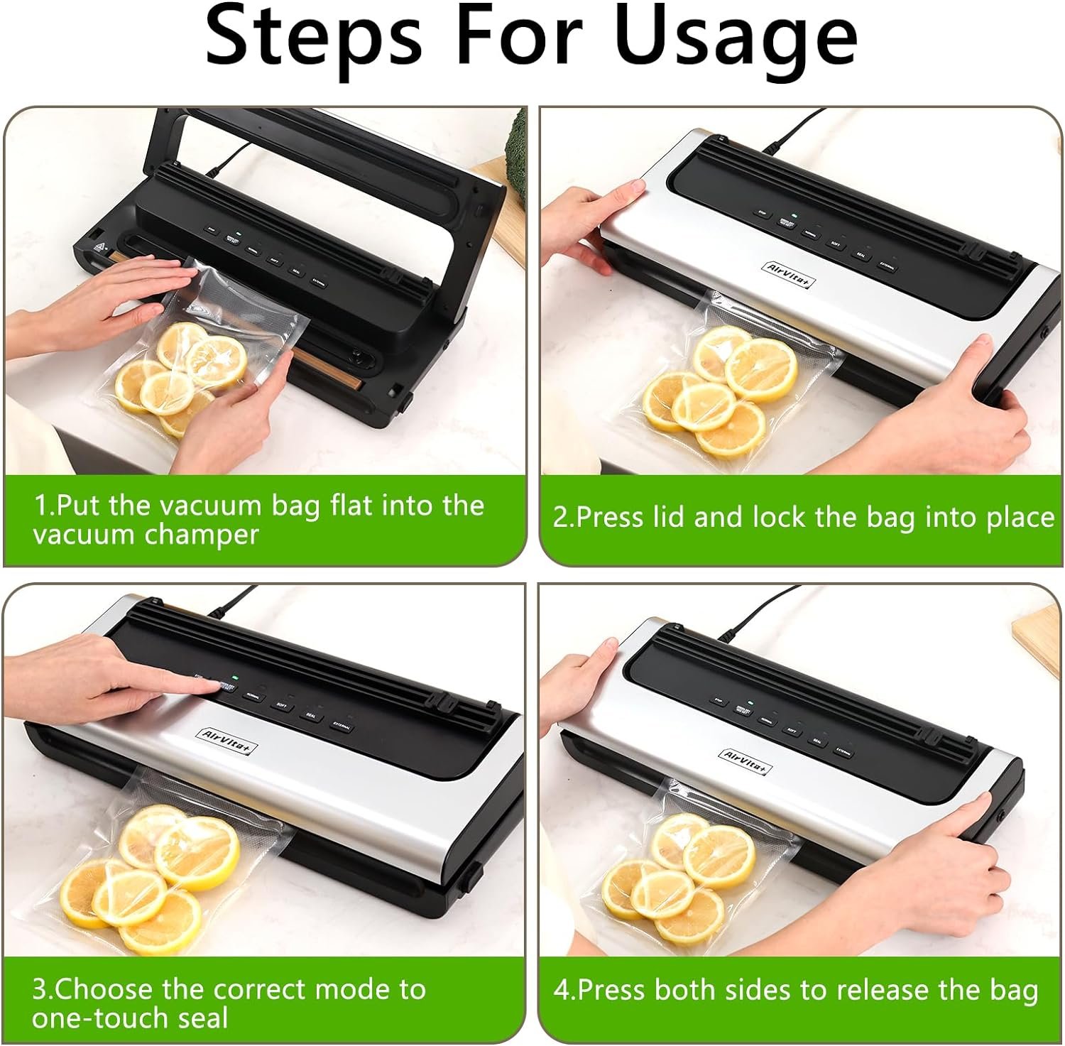 Efficient Performance: The powerful vacuum pump creates a vacuum pressure of -60kPa for optimal sealing, while the Normal Vacuum mode reaches -55kPa and Soft Vacuum mode offers a range of -15~-30Kpa.