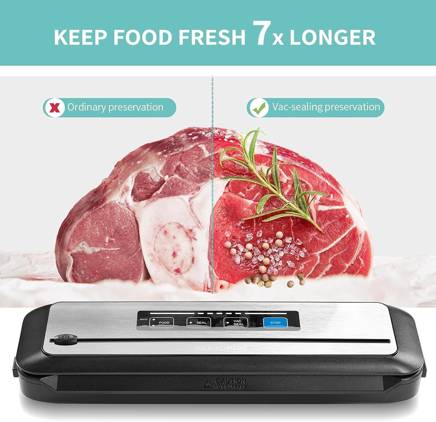【11.8” Width Built-in Cutter & 80kPa Strong Suction】The Inkbird food vacuum sealer customize a desired bag with the built-in cutter easily, fits up to 11.8” width sealer bags and rolls.The -80kPa strong suction sealer makes it quickly to vacuum food and keep them fresh for a longer time, saves time and money for you.