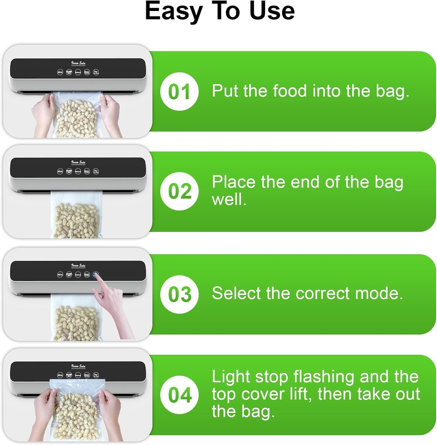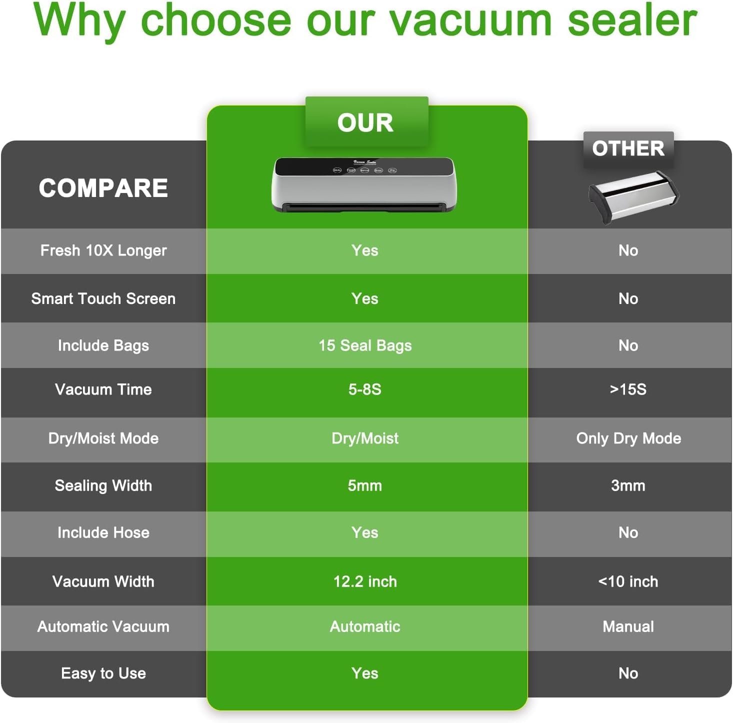 Vacuum Sealer New Upgraded 70 Kpa One-Touch Full Automatic Vacuum Sealer with LED Touch Screen Indicator Lights, Air Sealing System for Food Storage Dry/Moist Modes, 15 Seal Bags & 1 Air Suction Hose