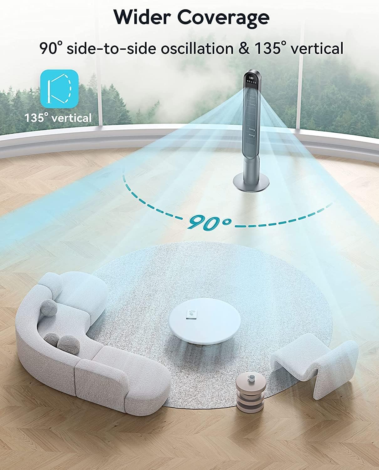 【Cooling for Whole Family】With a unique 90° oscillation+135° up-down adjust design, the cooling area was 2 times of the ordinary fans. whether standing or sitting, everyone near you can feel the coolness as well in a stuffy space.