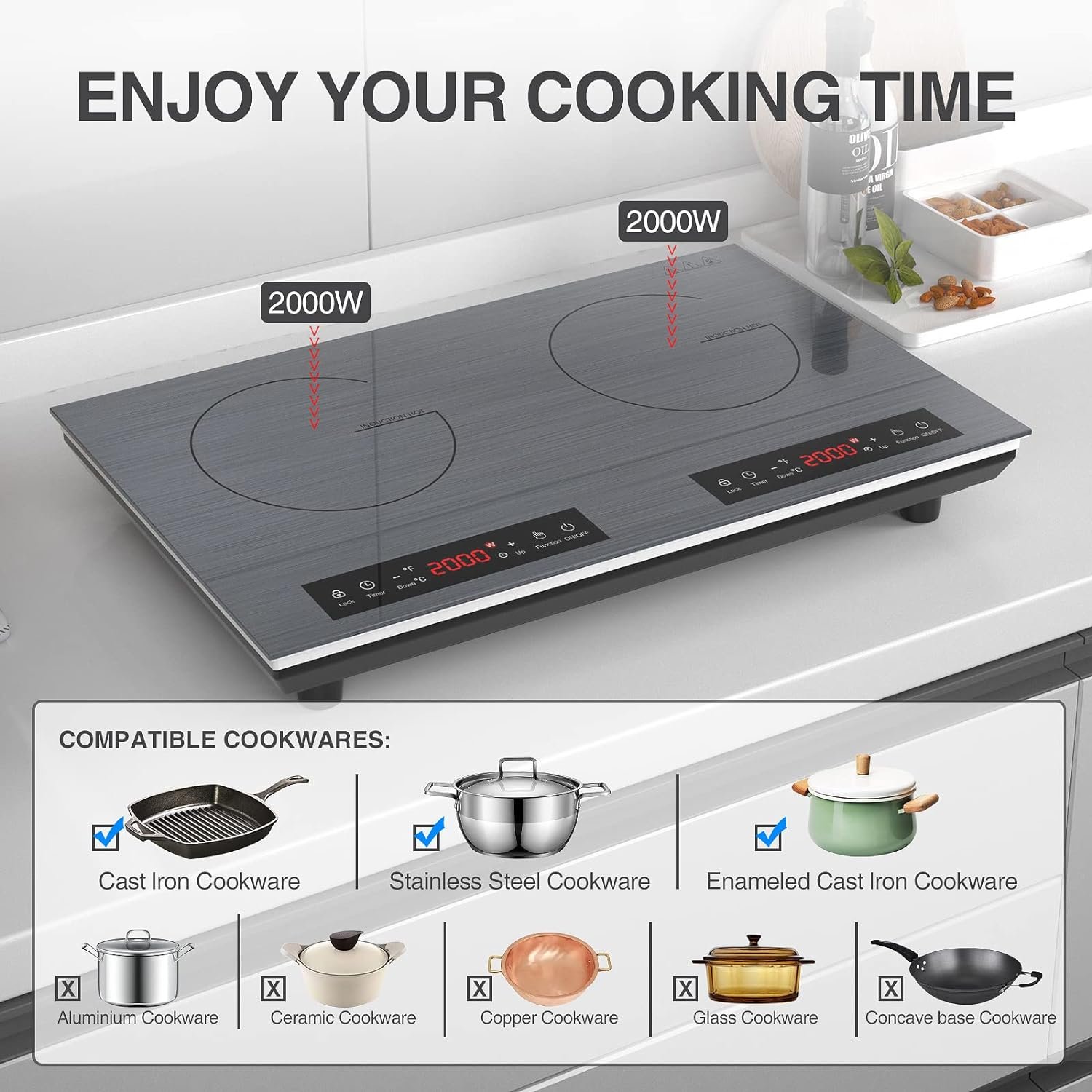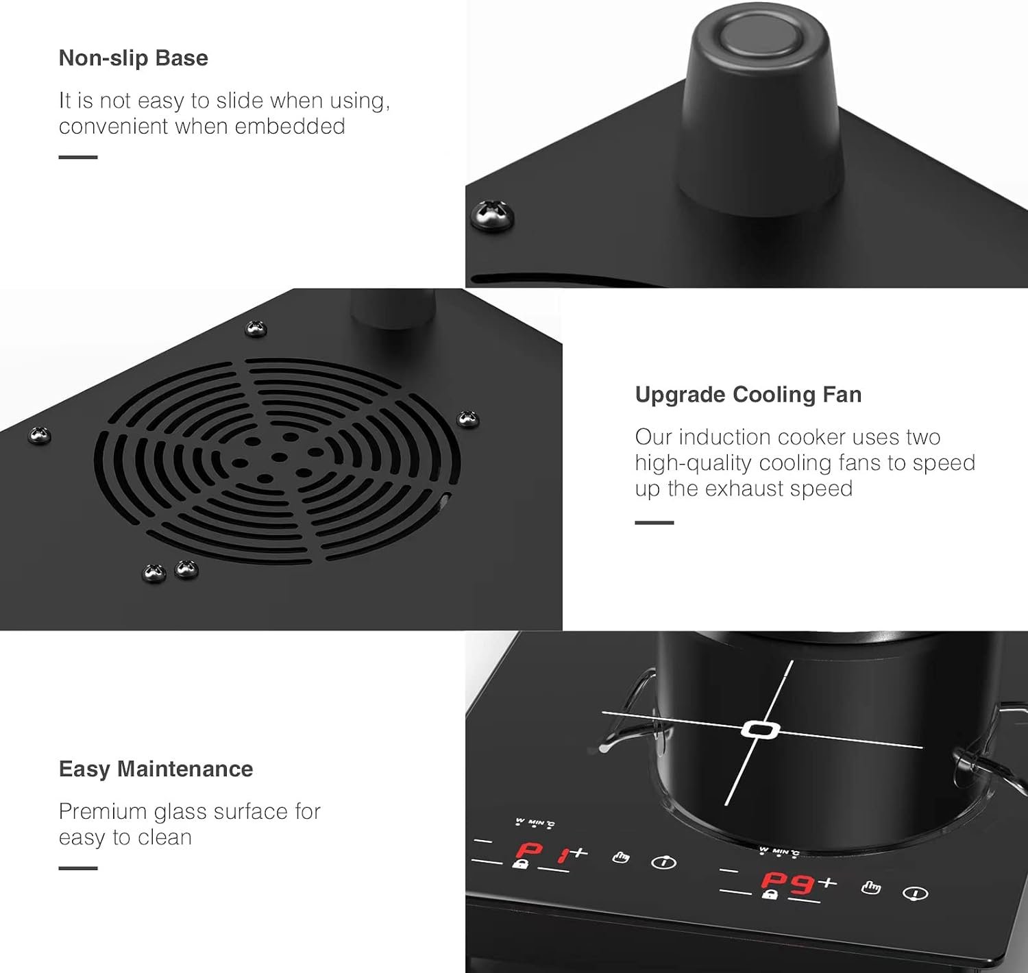 【Wide Range of Application】 This induction cooker is compatible with cast iron, iron, magnetic steel, enameled iron, stainless steel manufactured with a magnetic bottom. Low and high-pressure alarm system.