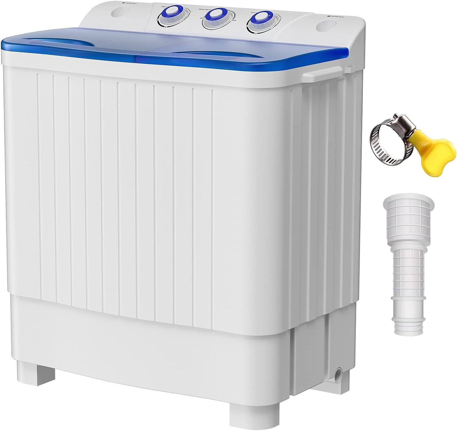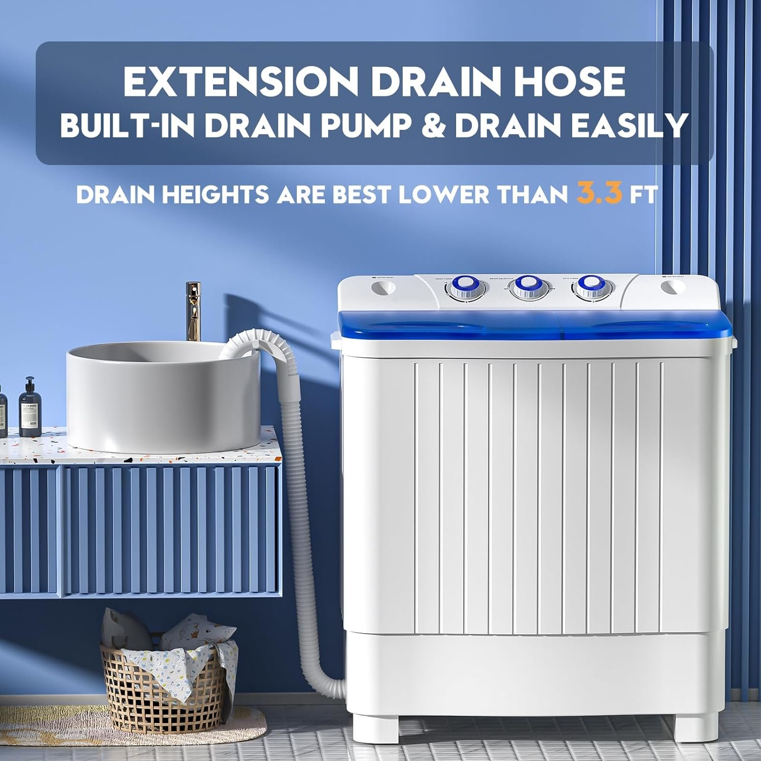 【Equip with Drain Pump & upgrade with long Hose(4ft)】We upgrade the extended drain pipe, So you can drain more easily. and This portable washing machine equipped with a drainage pump. And equipped with a 1300 RPM powerful motor, clothes can be washed quickly and efficiently.