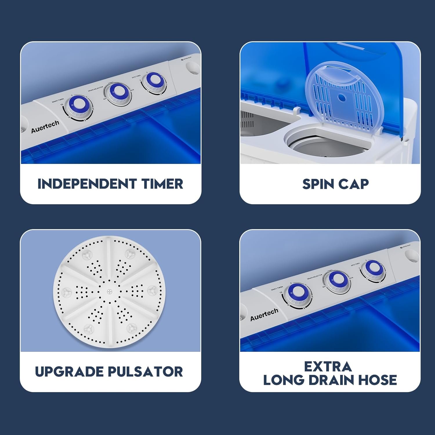 Extra long and drain pump design, easy to set and drain waterTimer design frees your handsUpgraded version of the agitator, clean more effectivetly and protect your healthSuitable for the apartments, RVS