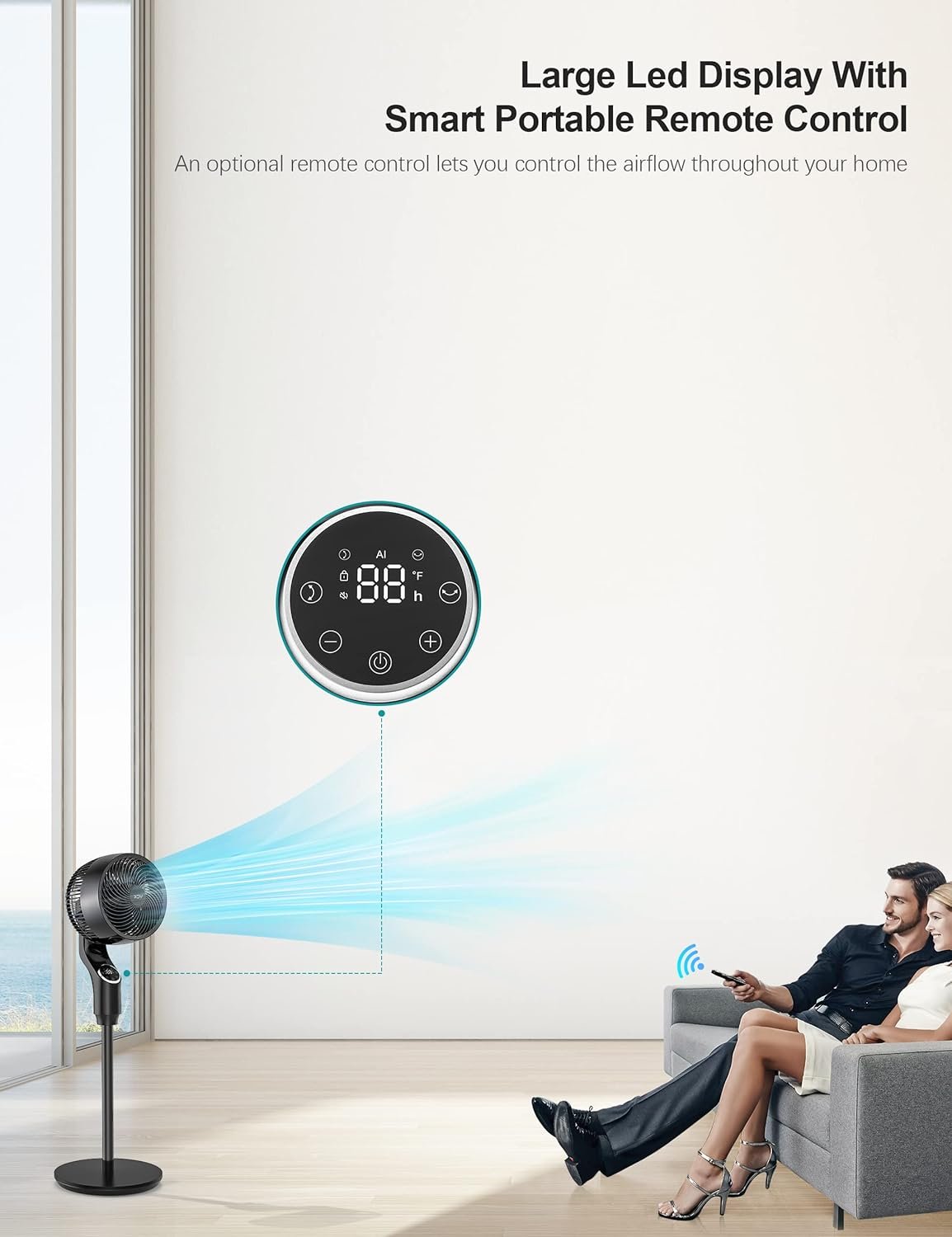 Easy to Use and Assembly:Featuring LED display, remote control and Room temperature display, the floor fan is designed for long-range and full function control (up to 6 meters). The height can be in 24″ table fan and 42″tower fan adjustment.it could get you fully covered no matter you are sitting on the couch or lying in bed.It is also easy to assemble,In just 3 steps, you can easily assemble a perfect fan