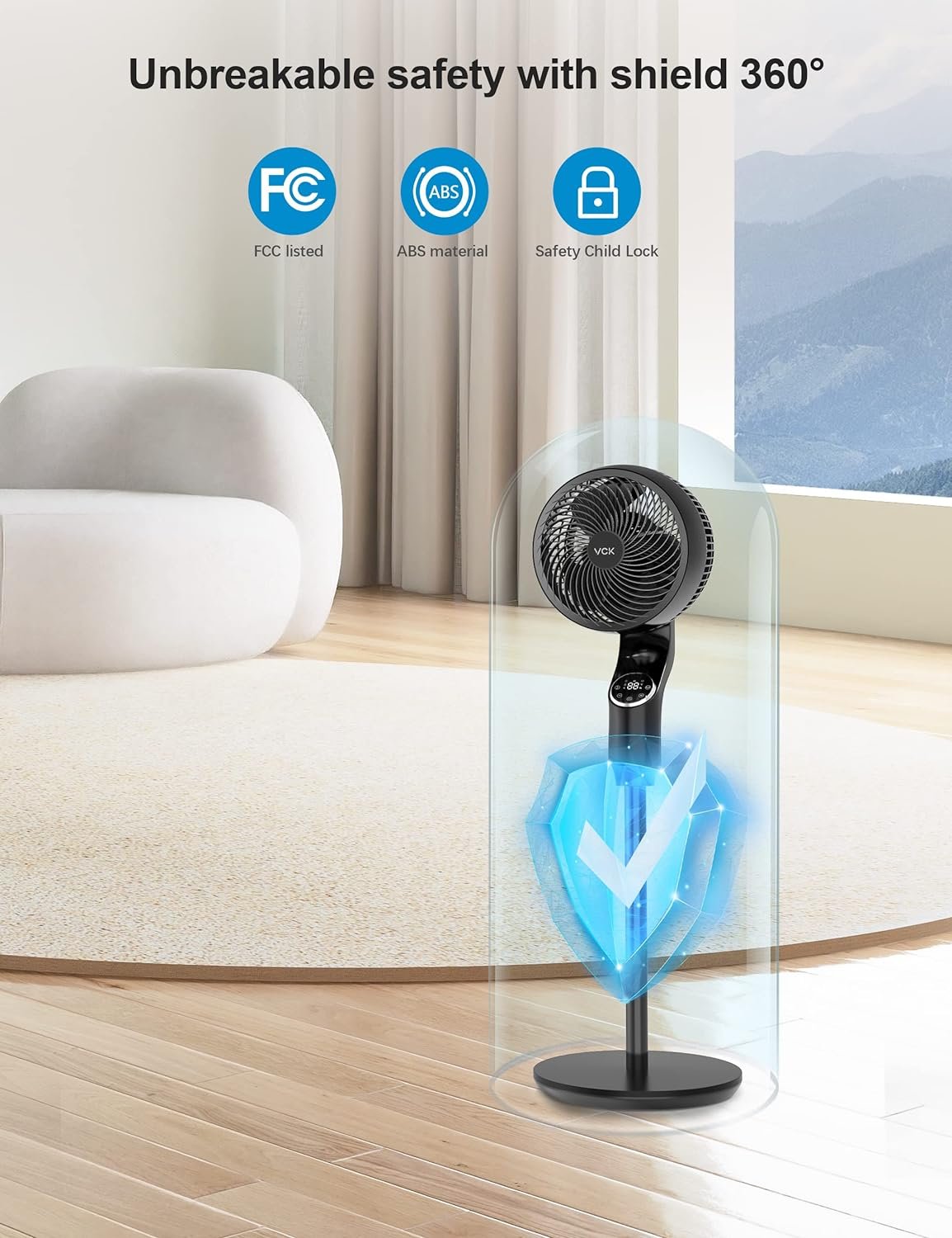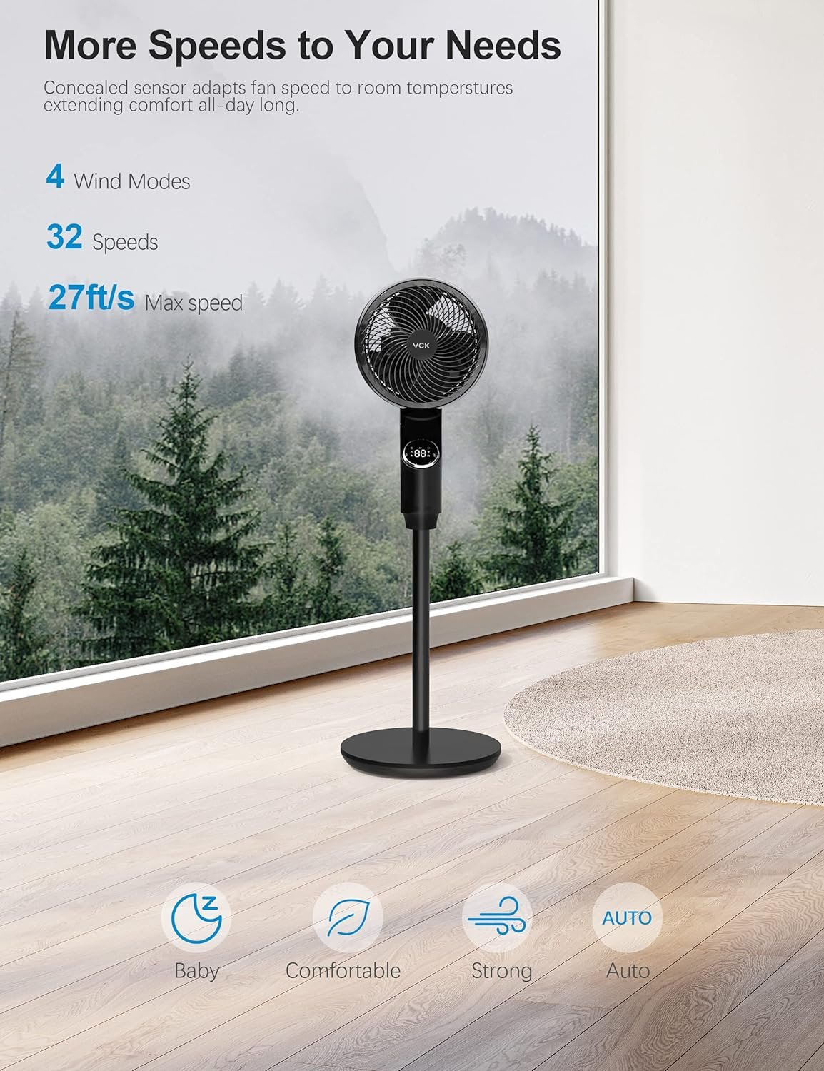 32 Speeds & 4 Modes:While most fans limit your options to a couple of speeds, VCK pedestal fan brings more ways to control air with 4 wind modes and up to 32 speeds