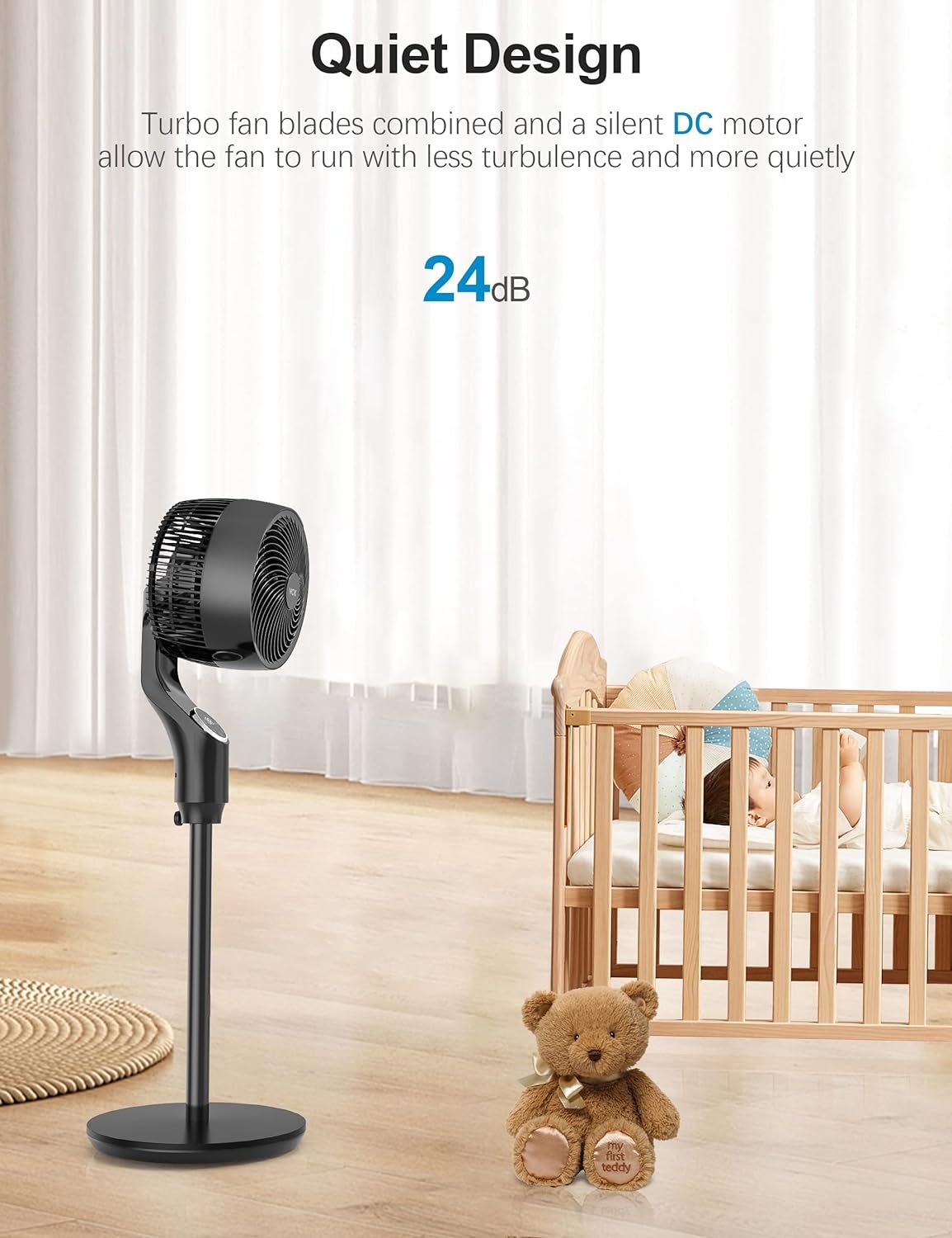 Quiet & Energy Efficiency: VCK floor fan equipped with DC silent motor, the pedestal fan is engineered for quiet operation (as low as 24 dB) . It is perfect for your bedroom or nursing room. The DC motor also offers greater energy efficiency and save up to 40% of the energy cost than its AC counterpart