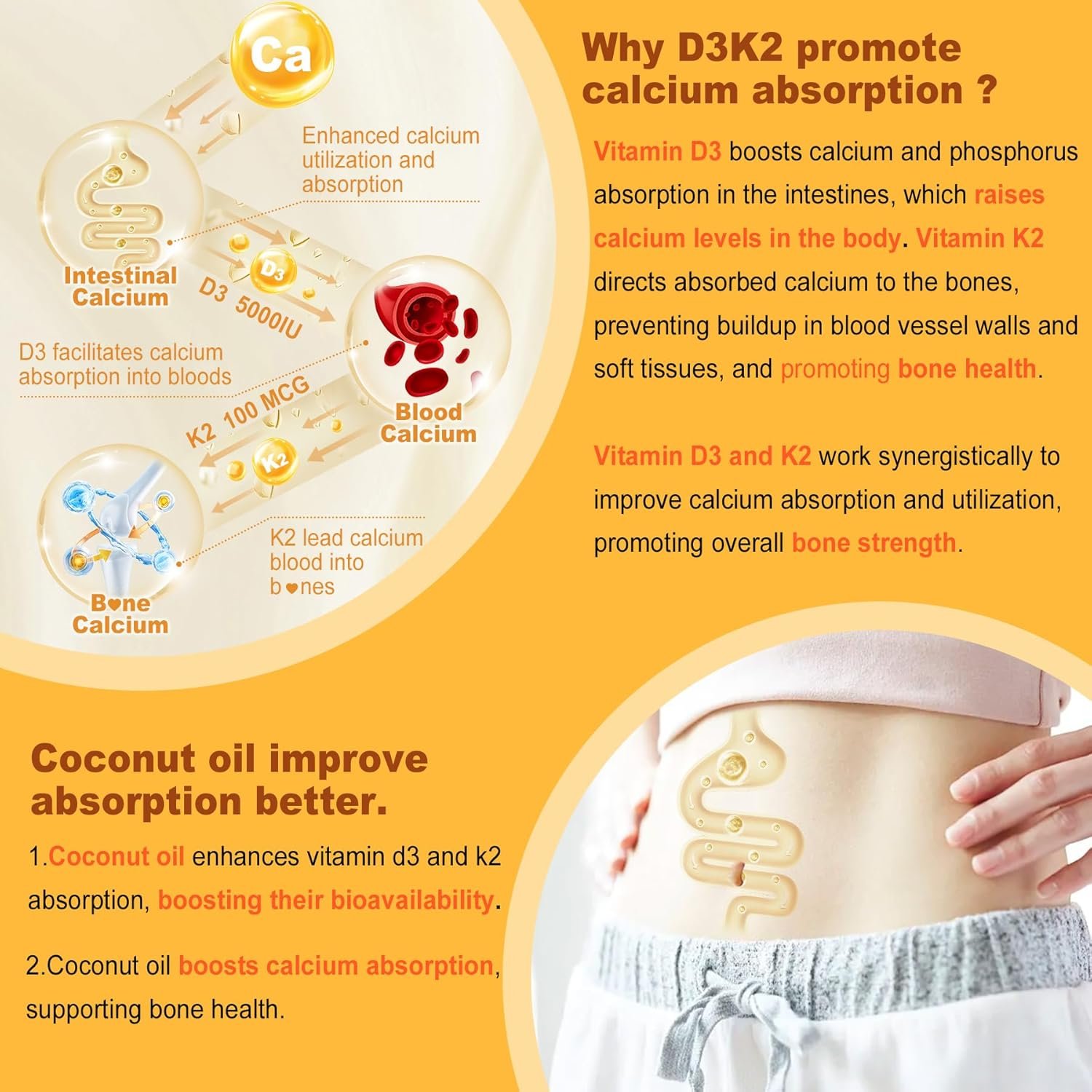 Enhance Absorption & Plant Based – Our vegan vitamin d3k2 gummies promote calcium and phosphorus balance in the blood. Magnesium, a cofactor of vitamin D3, participates in the activation of vitamin k2 and encourages the absorption of vitamin d3. Additionally, d3 & k2 are fat-soluble, which means that the body may struggle to absorb them effectively. Enhanced with plant-based coconut oil, our formula promotes the efficient absorption of vitamin D3K2.