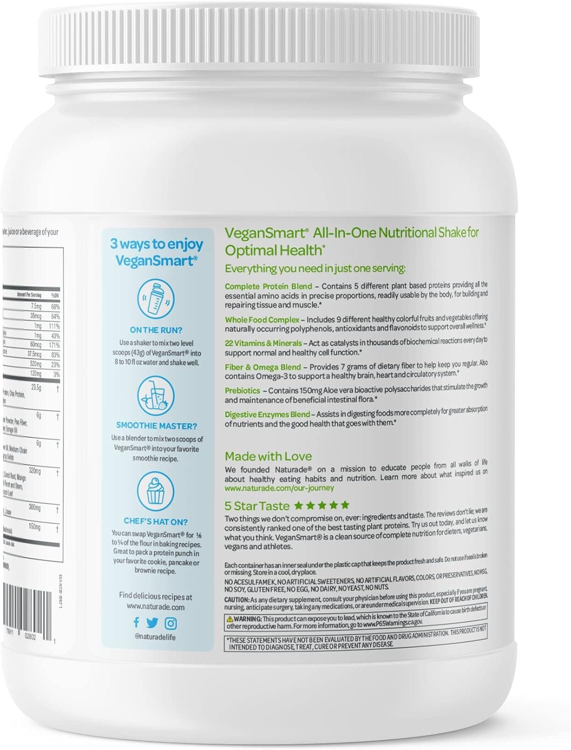 DELICIOUS AND NATURALLY FLAVORED: Reinvent your protein shake experience with our delicious Naturade Vegansmart, naturally flavored with authentic vanilla. This naturally flavored, rich, and creamy shake is free from artificial additives, doubling as a comprehensive meal replacement. Ideal for breakfast or on-the-go, it can be enjoyed as a granola bowl or blended shake, providing guilt-free, tasty, and nutritious sustenance.