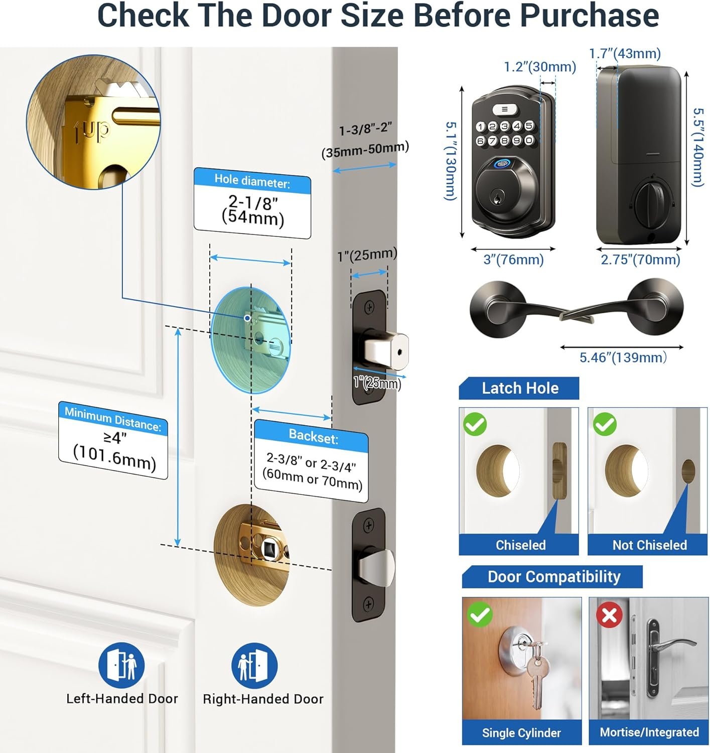 Easy to Install: Just with a screwdriver can easily finish installation and program by yourself in minutes, compatible with all American standard left and right-handed doors.