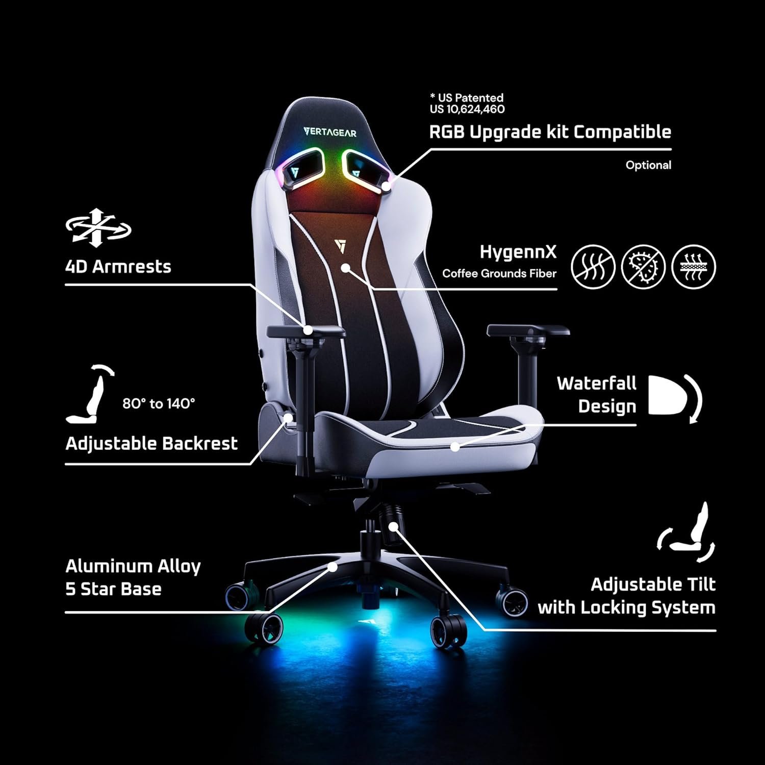 RGB Upgrade Kits(Optional) – The World’s only wireless PC operate patented RGB LED gaming chair. The smart interactive effects yield unlimited possibilities to reflect your mood on live streams or immerse yourself in intense gaming adventures. Showcase your creativity with fully customizable illumination and vivid animation effects to bring your battlestation to life.