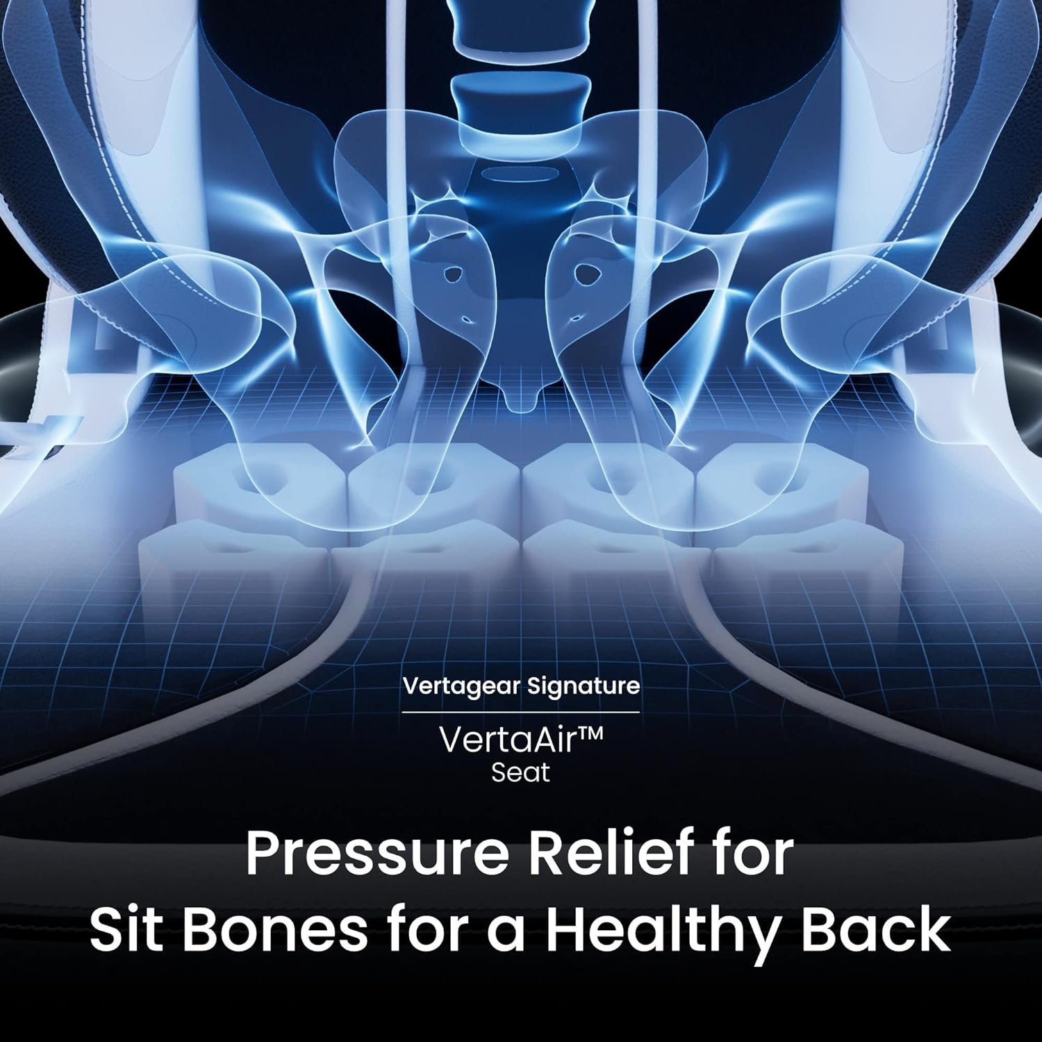 The VertaAir seat boasts features that improve support, comfort, and relief from chronic back pain. The seat is embedded with eight hexagonal air pillars, inspired by Bernoulli’s Principle, all designed with smaller air intake tunnels and 4-way air emission tunnels to provide pressure relief for your bones and superior back support.