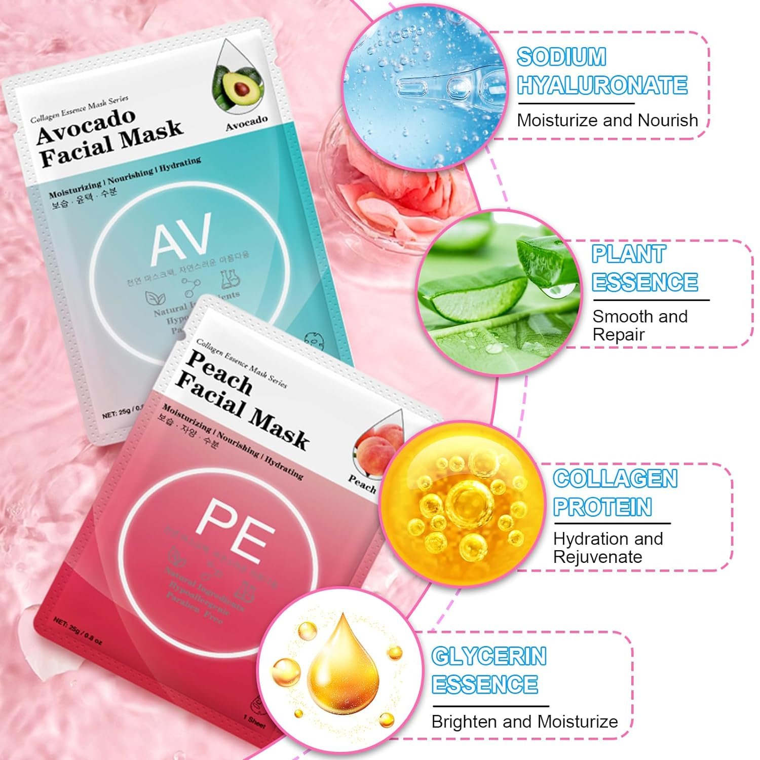 💝【Relax for 15 Minutes Every Day】Plant essence and sodium hyaluronate-Provide deep hydration and moisturizing for facial skin, Anti aging collagen essence-Helps to increase skin elasticity and create younger skin.Enjoy 15 minutes of relaxing and effective skincare every day, make you look younger day after day.