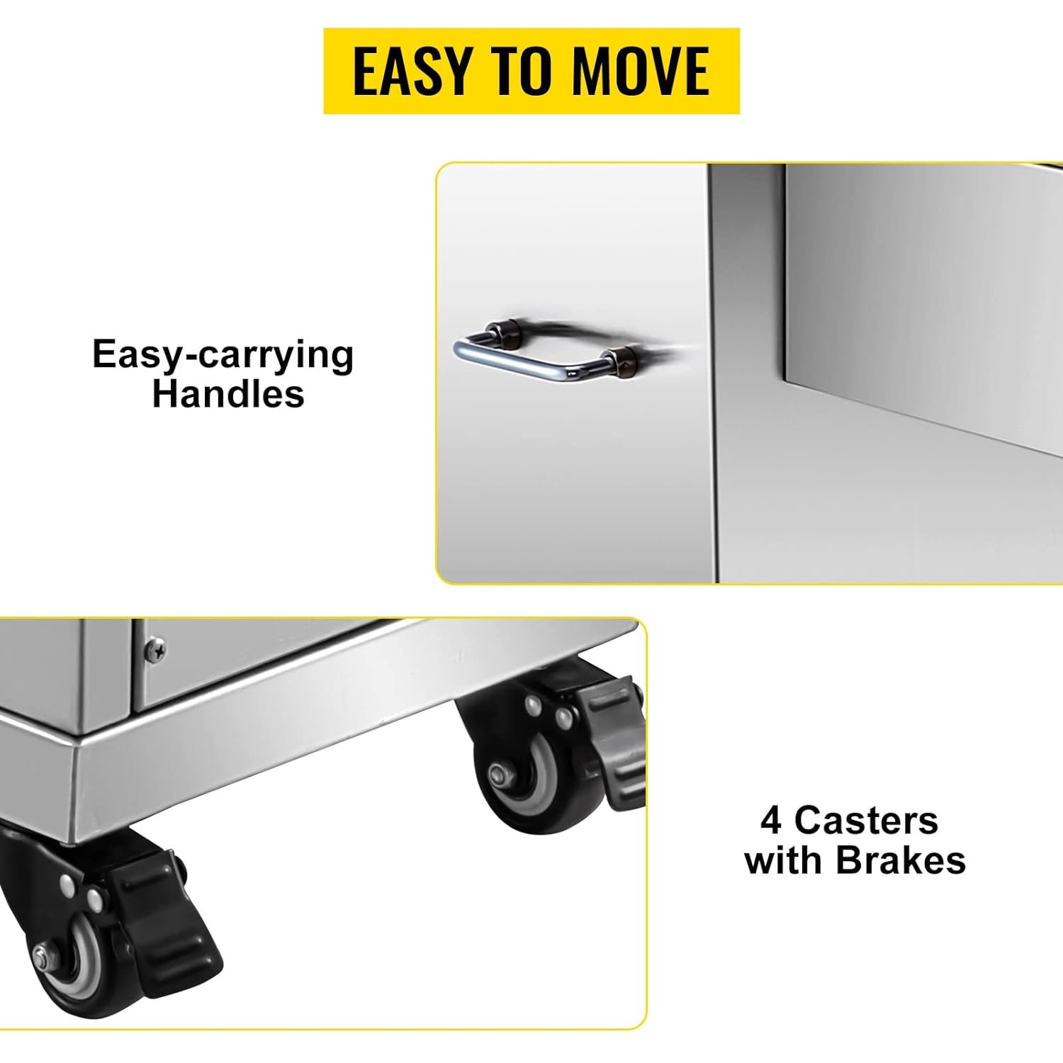 Well-designed Details: The blade of our commercial electric cutter is designed by the external hanging style, can be convenient detached for washing. Four casters provide for smooth movement. Two handles mounted on both sides make it easy to carry.