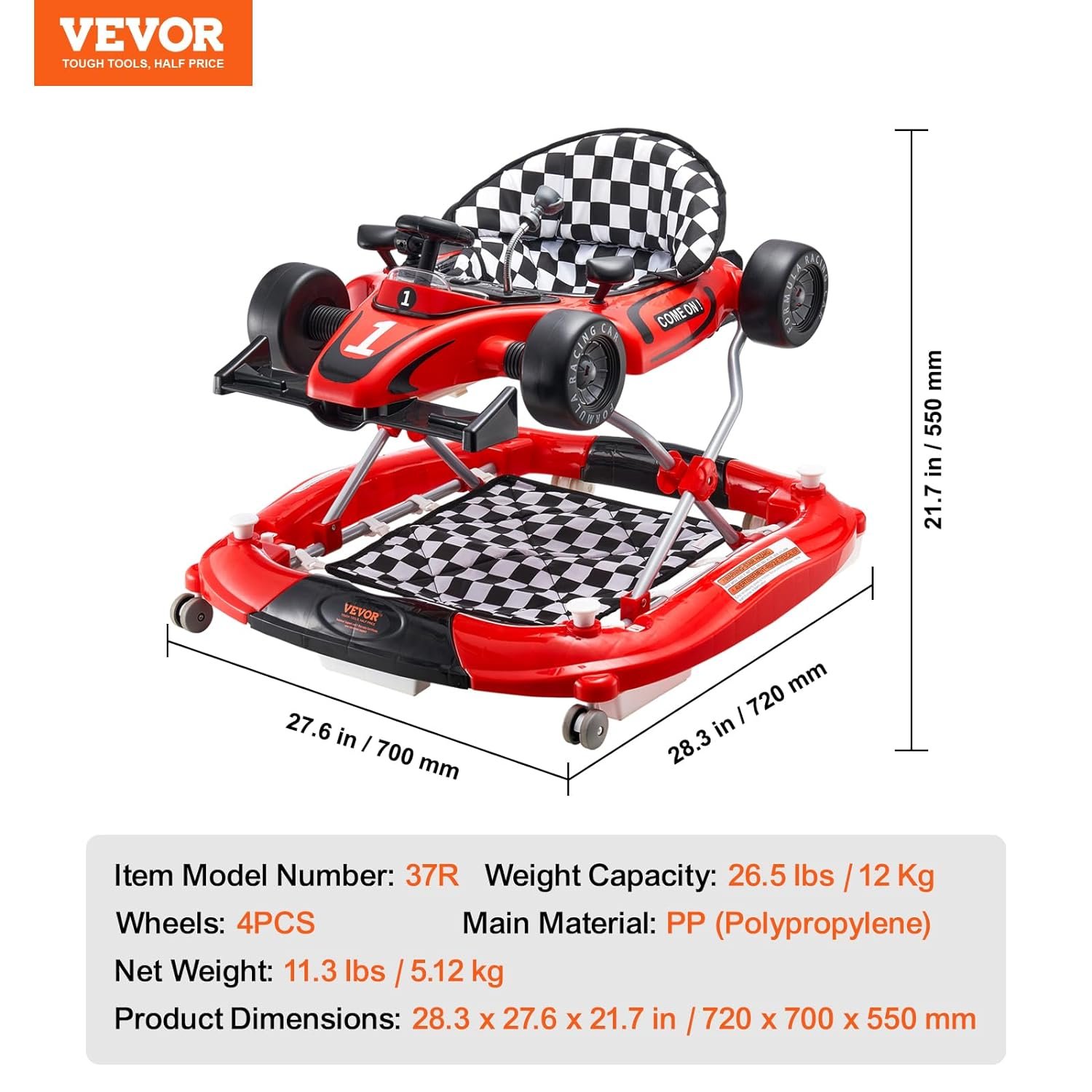 4 in 1 Multi-functional Baby Walker: VEVOR 4-in-1 baby walker is the perfect companion for helping kids standing and walking, enhancing their coordination, muscle strength, balance, and exploration. With 4 versatile modes: Learning-Seated, Walk-Behind, Car Shape and Rocker, it adapts to your baby’s evolving needs at every stage of growth. (Suitable Age: 6 – 24 Months)
