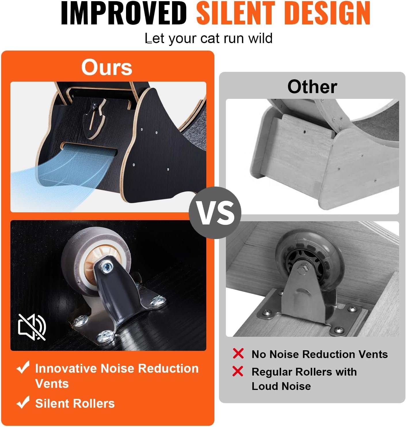 Tranquil and Noise Reduction: Equipped with an integrated silent wheel and a bottom noise-reduction, this double noise reduction design creates a quiet and pleasant exercising environment for your pets, while also improving the indoor atmosphere.