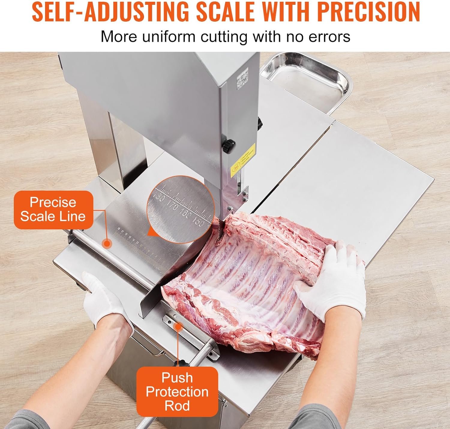 Precise & Even: The stainless steel worktable provides a cutting surface with precise scale lines. You can adjust the desired thickness more accurately as needed. The commercial bone cutting machine can accommodate large pieces of lamb leg bones and beef leg bones. The cutting thickness can be adjusted from 0.16 to 9.1 inches, allowing for excellent results with thin ham slices or thick chunks of bone.