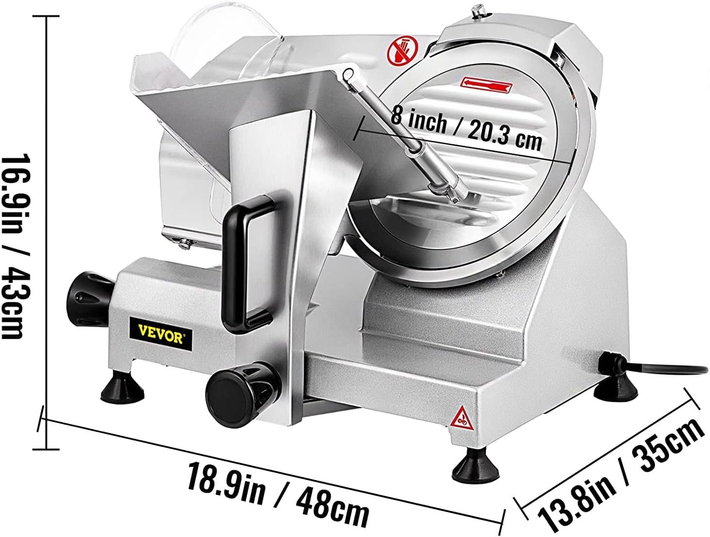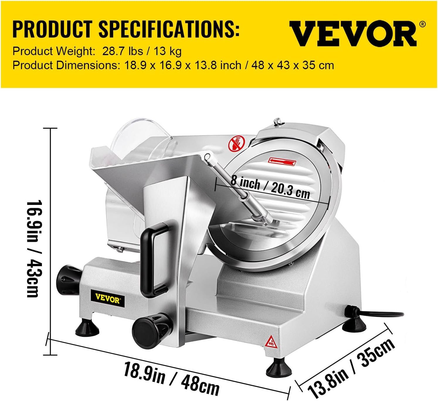 VEVOR Commercial Meat Slicer, 200W Electric Deli Food Slicer, 1200RPM Meat Slicer with 8″ Chromium-plated Steel Blade, 0-12mm Adjustable Thickness Electric Meat Slicer for Home & Commercial Use