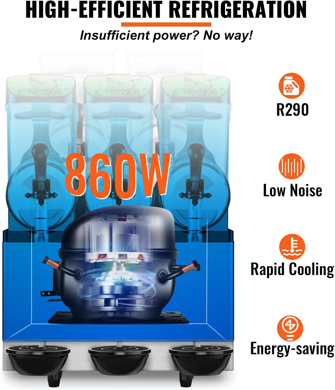 Rapid Refrigeration & Blending: Our refrigeration system uses R290 refrigerant and has excellent features for fast cooling and efficient slush production, specially designed for the business of summer frozen drinks. The 860W powerful compressor has fast cooling capabilities that are energy saving while maintaining a quiet operation. Ideal for restaurants, bars, weekend parties, teahouse distilleries, and nail salons. Perfect for home and commercial use.