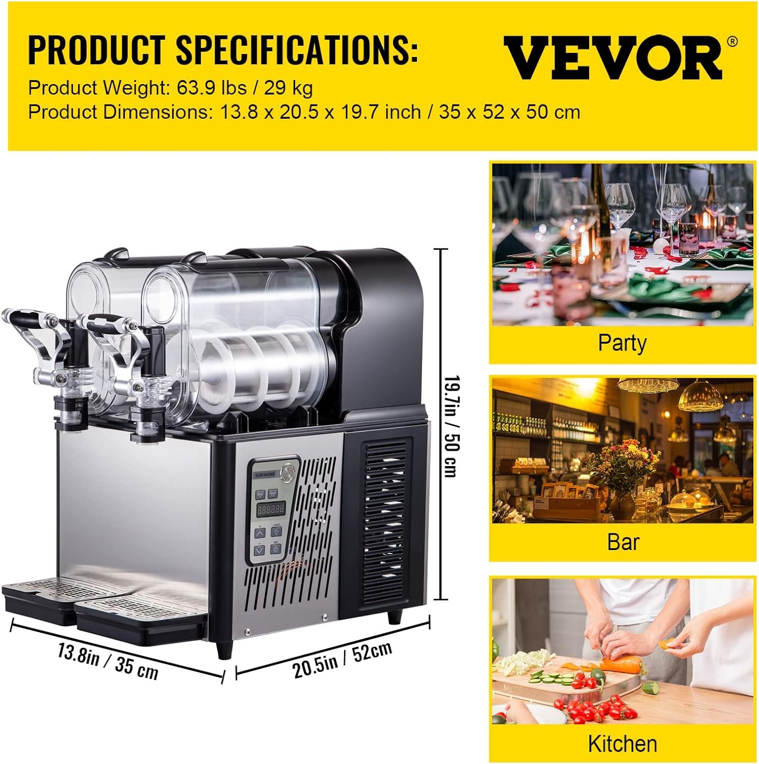VEVOR Commercial Slushy Machine, 3Lx2Tank Slushie Machine, 370W Frozen Drink Machine with Temperature Preservation, Slushy Maker Machine for Supermarkets Cafes Restaurants Bars, Black